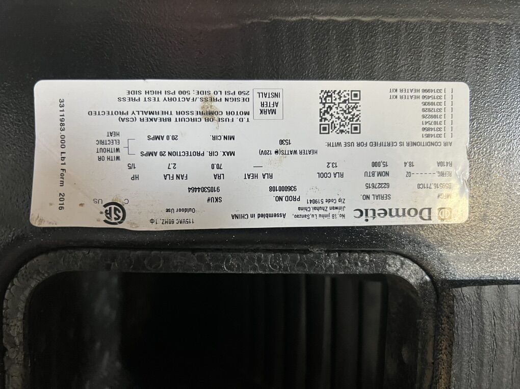 This is the Dometic Brisk air 2 15,000 BTU model. Comes with soft start module thermostat and control controller unit as pictured. The AC works great and blows cold. I pulled it from my RV to go with a mini split system. Everything in pictures is included. The soft start all by itself goes for $295.00 on an Amazon.