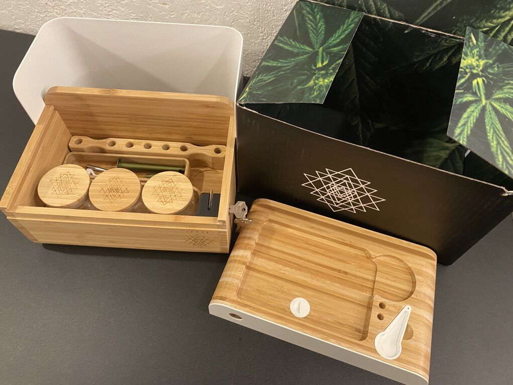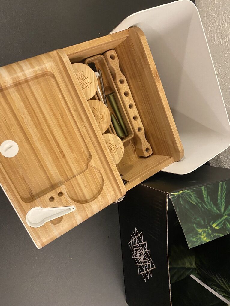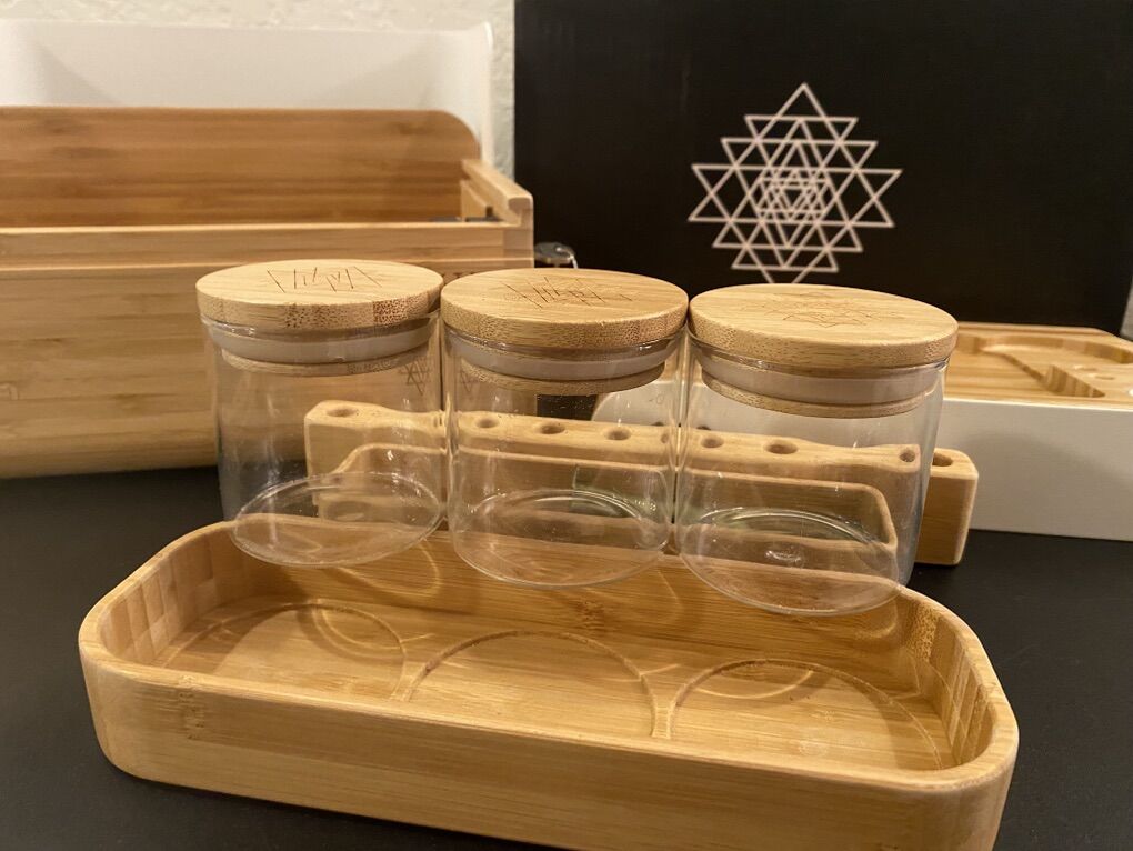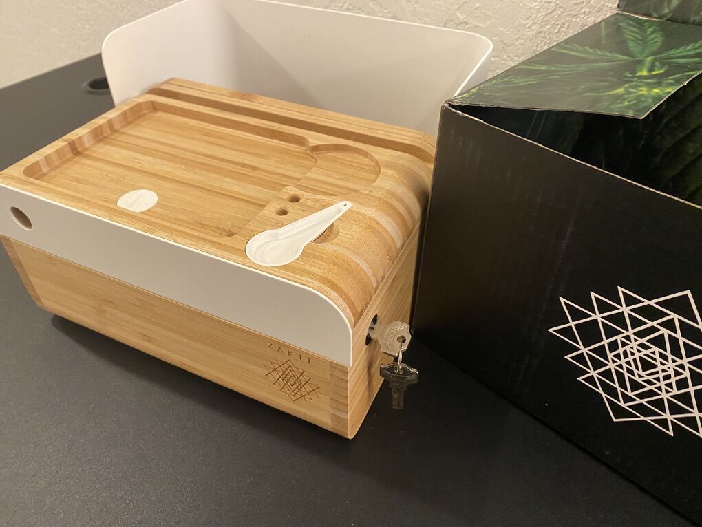 From the website- Introducing the Zakti Journey Storage Box, an epitome of sophistication crafted from premium, eco-friendly bamboo paired with high-grade aluminum. Elevate your storage experience with a meticulously designed ensemble that includes many tools for your process Elevate your storage rituals with the Zakti Stash Box – a harmonious fusion of style, security, and functionality.