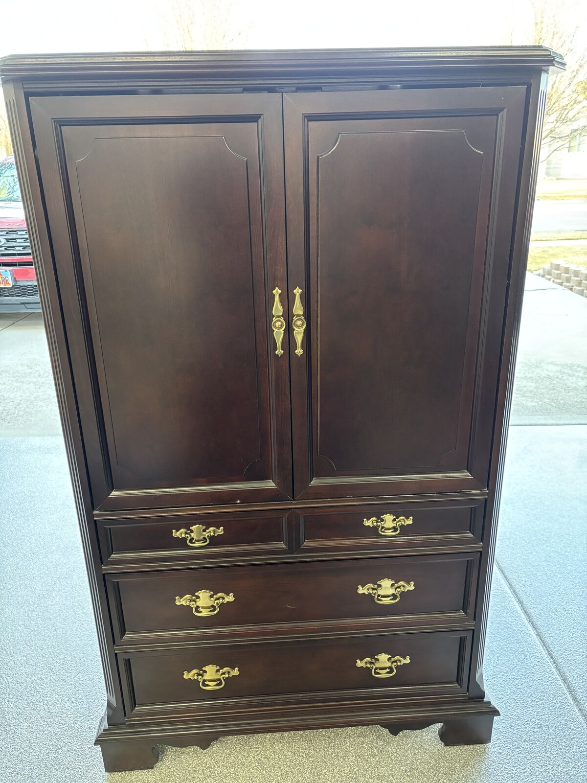 VenmoDark cherry dresser and armoire (drawers & tv cabinet). Excellent condition. Wil sell separately. $150 each.