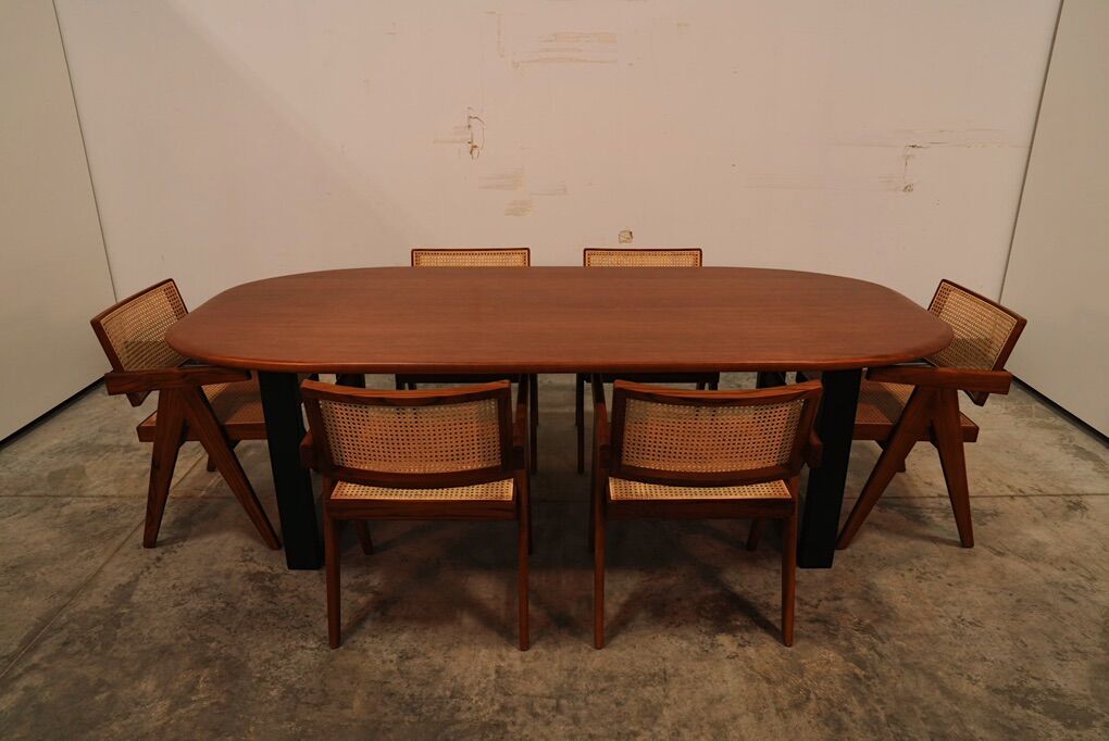 The signature oval, surfboard-inspired silhouette features soft, sculpted edges that transition seamlessly from the ends to the sides, creating a continuous flowing profile. The result is a table that feels both modern and timeless—visually light, yet structurally substantial.