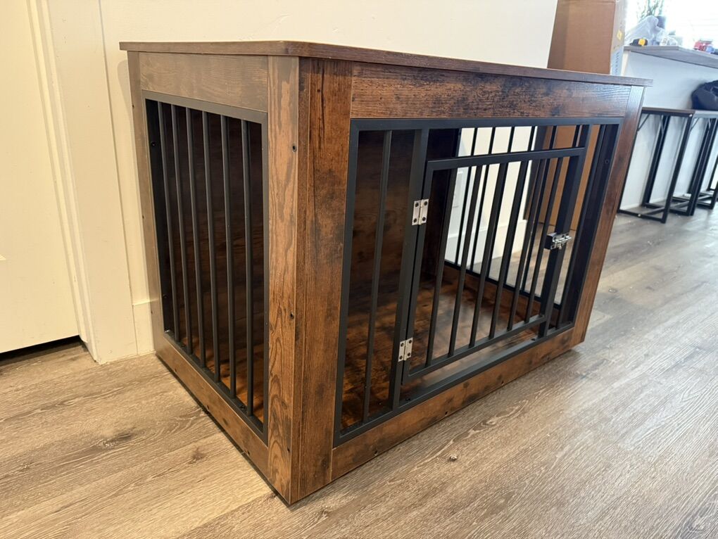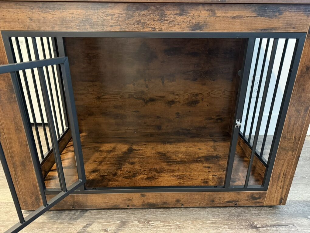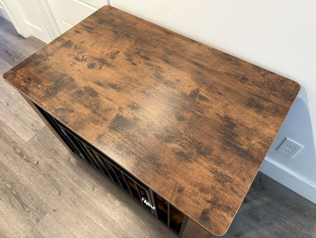 VenmoBrand New, never been used, Dog Crate Furniture for Pets, Side End Table, Modern Dogs Kennel Indoor up to 60 lb, 2-in-1 Iron-Wood Fusion Dog Cage with Waterproof Top, Safety Corners, Steel Lock, 38L, Rustic Brown
