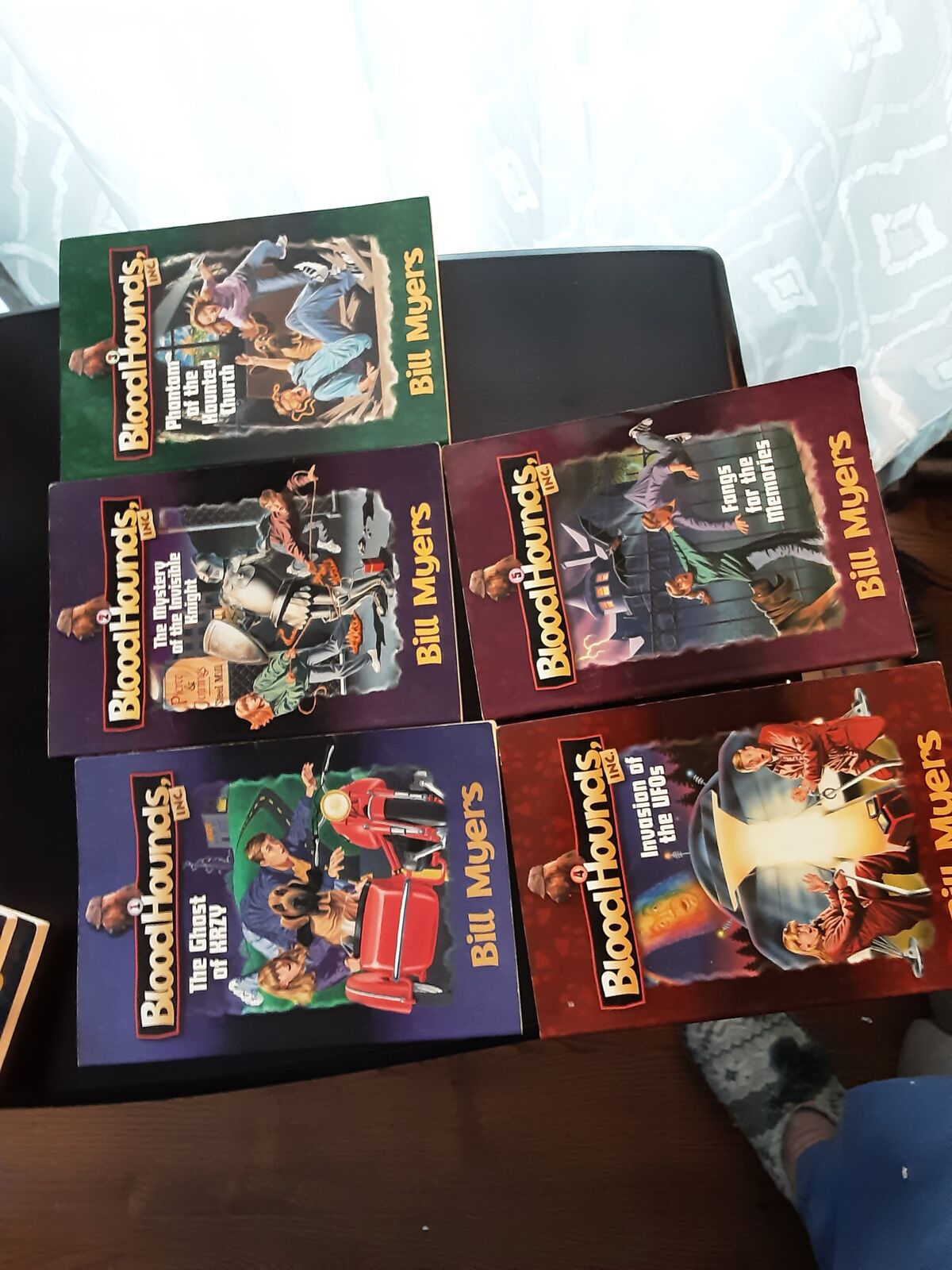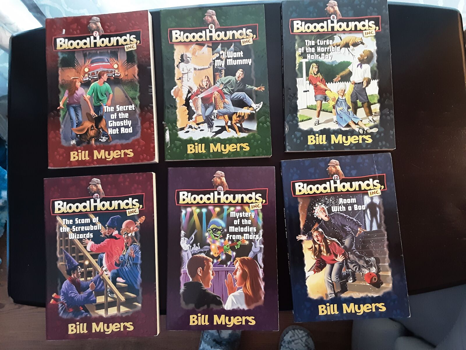 Books 1-5 and 7-12 (sorry. I am missing number 6) so 11 of the Blood Hound series by Bill Myers. They are in used but very good condition. $30 for the set.
