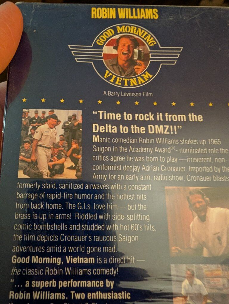 PayPalSet in 1965; Produced and released in 1987.In GOOD MORNING, VIETNAM, which is based on a true story, Cronauer (Robin Williams) is a nonconformist with a wicked sense of humor who is transferred from Crete to Saigon. Outrageous and over the top, Cronauer speaks in accents, creates characters, pokes fun at everyone--including the President--and spins banned rock and roll tunes. While his antics amuse the masses, they also put him in hot water with his superior officers, particularly Lt. Steven Hauk (Bruno Kirby), who would prefer that the radio show be censored, sanitized, and completely noncontroversial. Cronauer takes his show outside the radio station when he starts to teach Vietnamese locals English in an effort to meet pretty, demure Trinh (Chintara Sukapatana). He befriends Trinh's brother, Tuan (Tung Thanh Tran), who becomes an unlikely comrade in uncertain times. Directed by Barry Levinson (DINER, AVALON), the film features a tour-de-force performance from Williams, who improvised much of the comedy used in the radio shows, earning an Academy Award nomination for Best Actor.