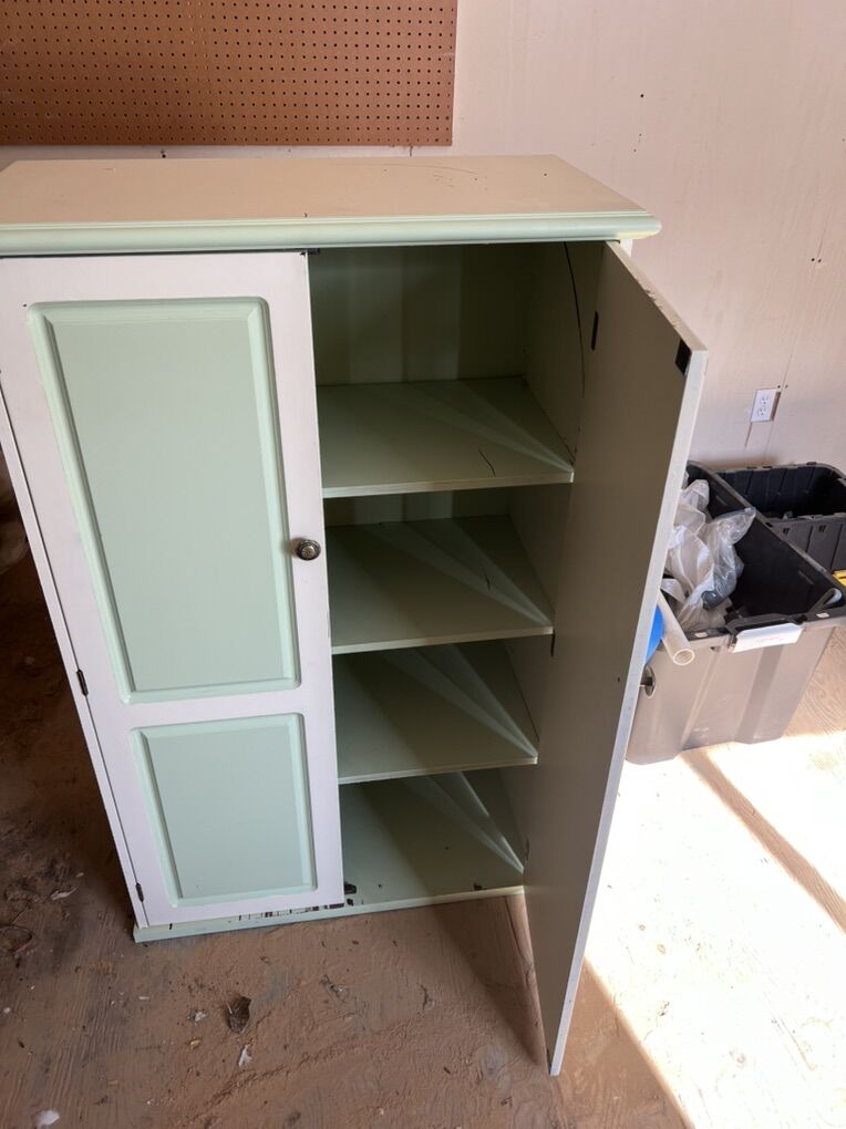 Zelle32 wide 15.5 deep 49.5 tall Green and white dresser Price to sell - moving soon