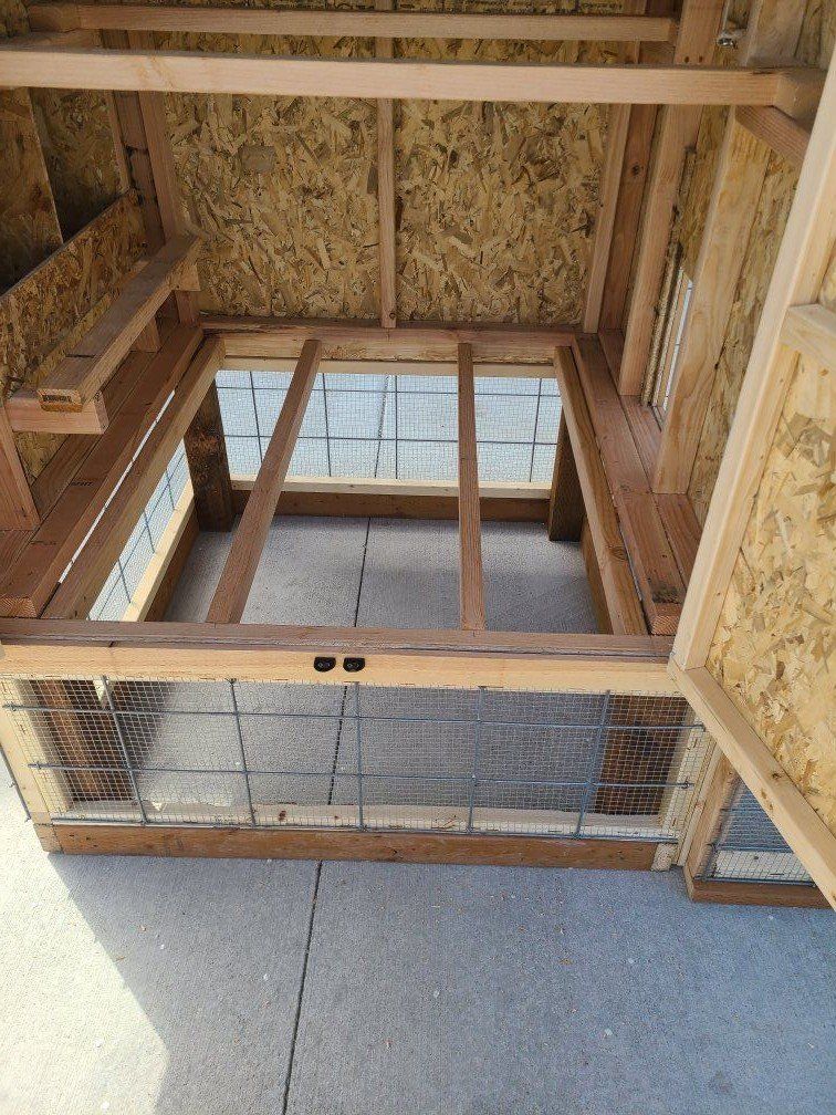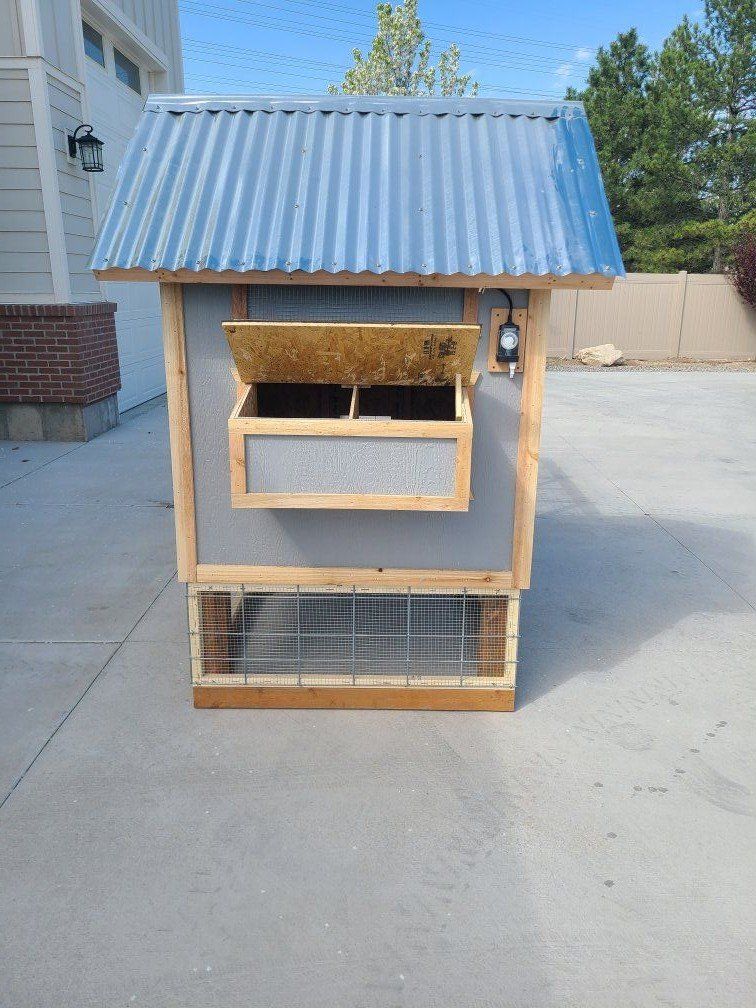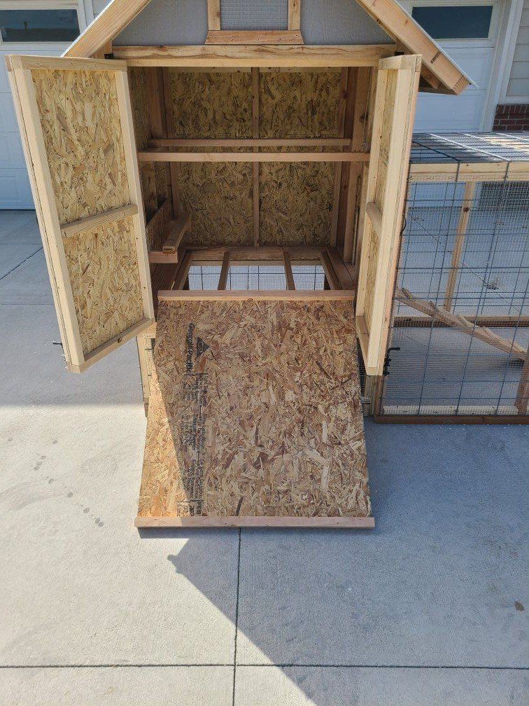 Can easily accommodate 10+ chickens. includes (2) nesting boxes and (2) removable roosting boards. Coop is small enough to haul in standard pickup truck bed. Package deal (coop + standard run + auto door): $2000