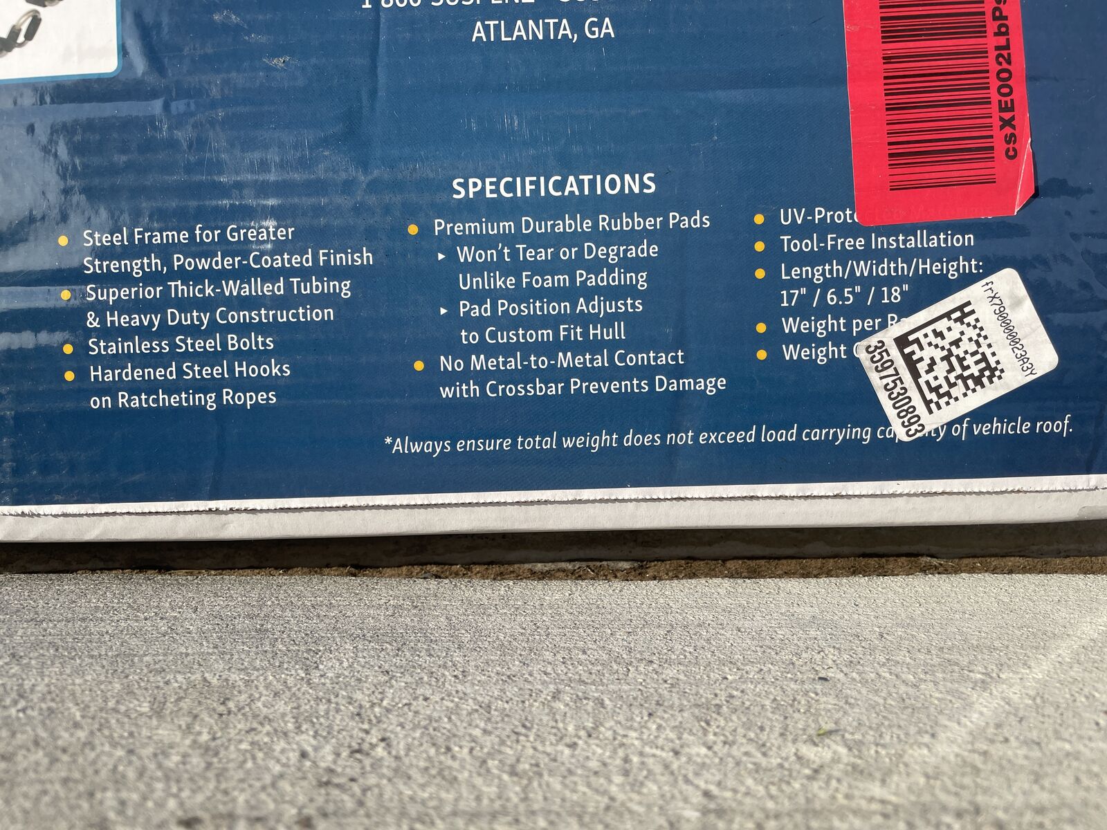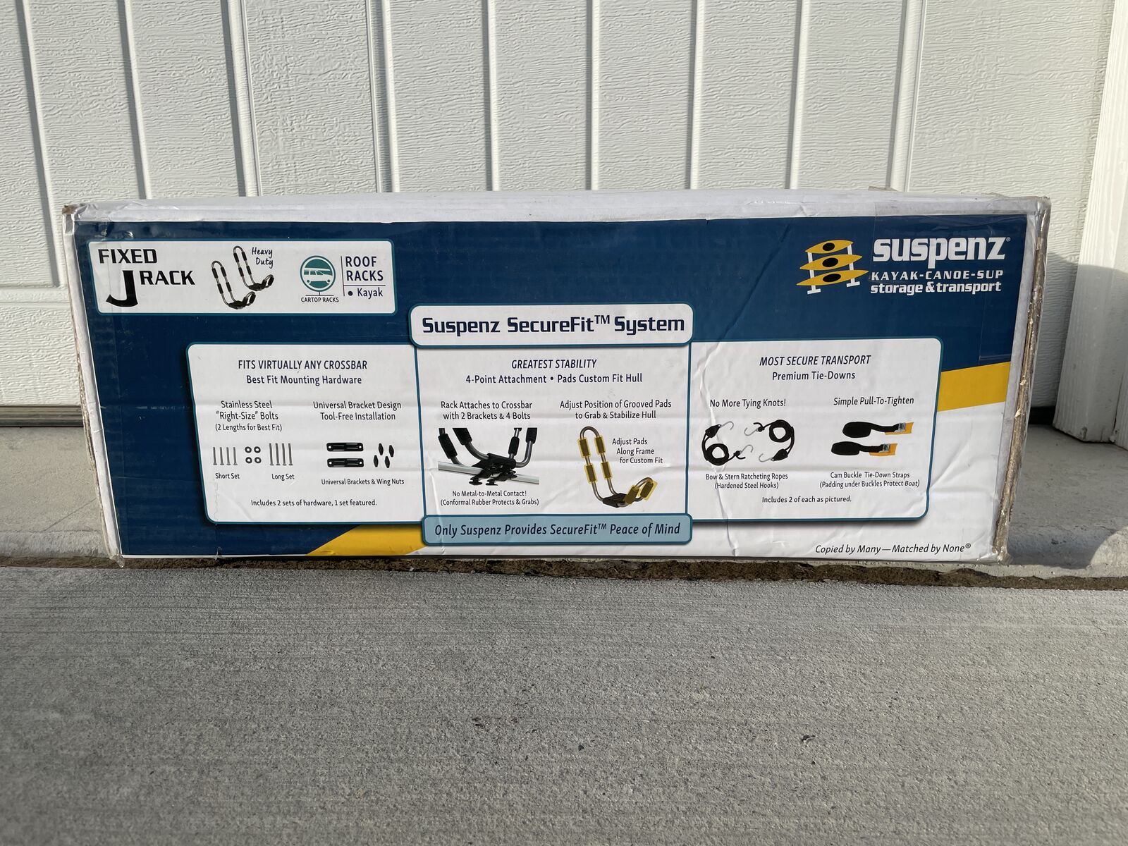 VenmoUp for sale is a NEW Suspenz Kayak Car Top Fixed J-Rack Carrier with Tie-Down Straps.