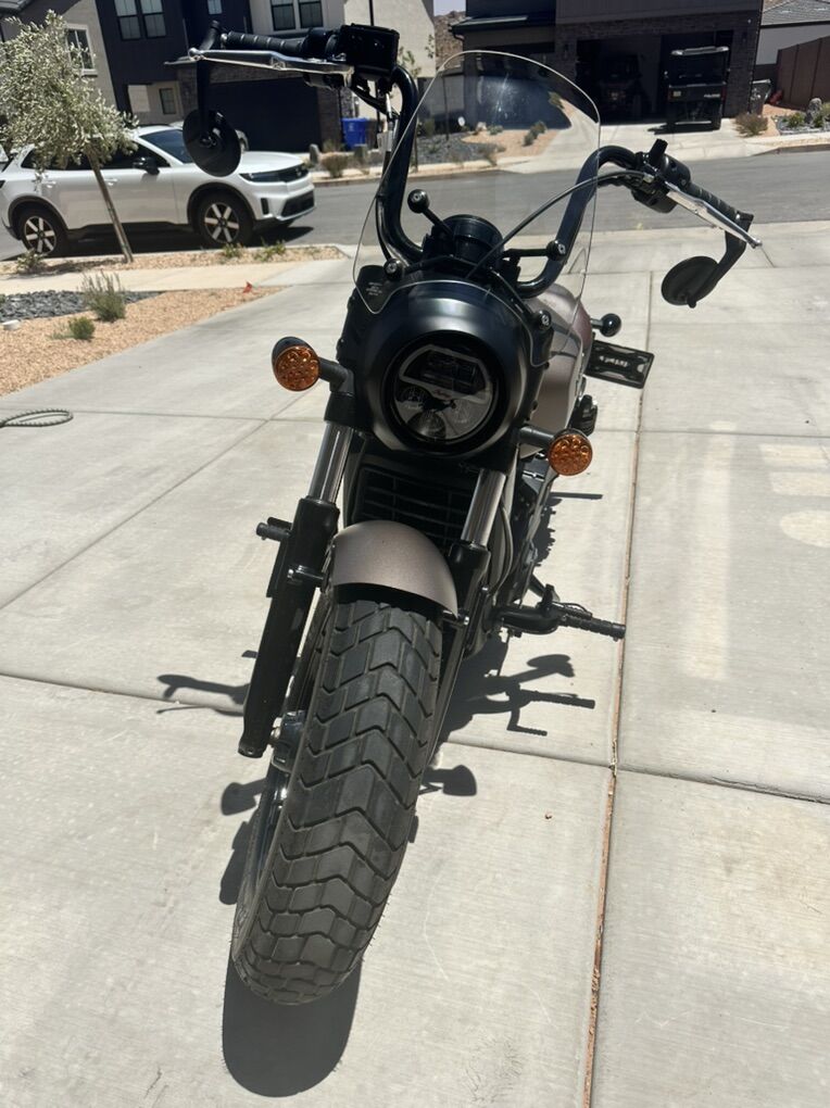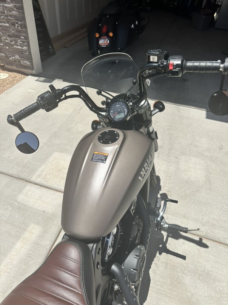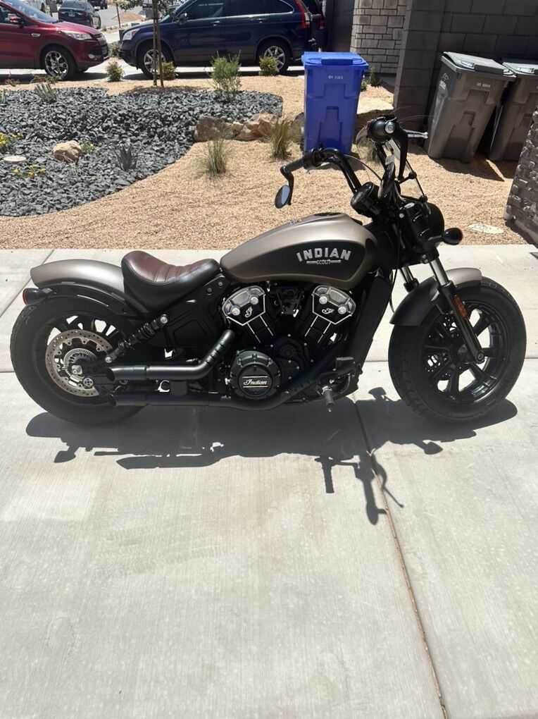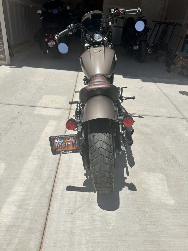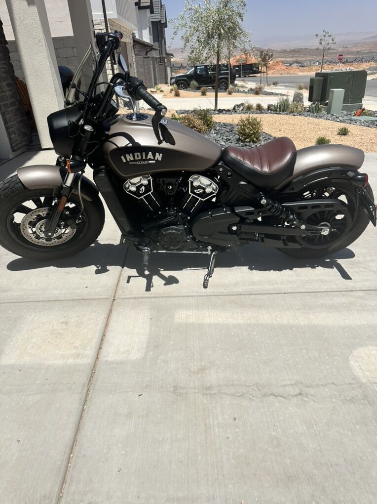 Venmo2020 Indian Scout. Bronze smoke color. Bike is super fun and always turns heads. Wherever I’ve taken this bike I have always received compliments. It has short inserts on the exhaust and sounds better than it looks.