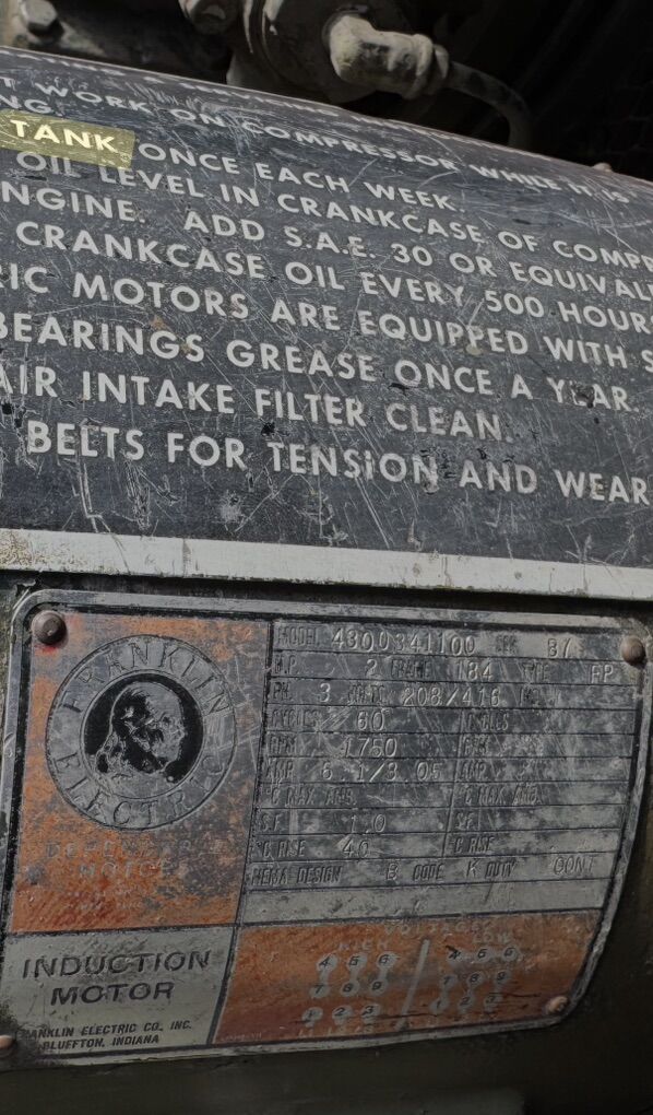 The beast. Still runs good. 220v single phase See data plate for specs.