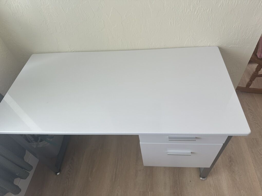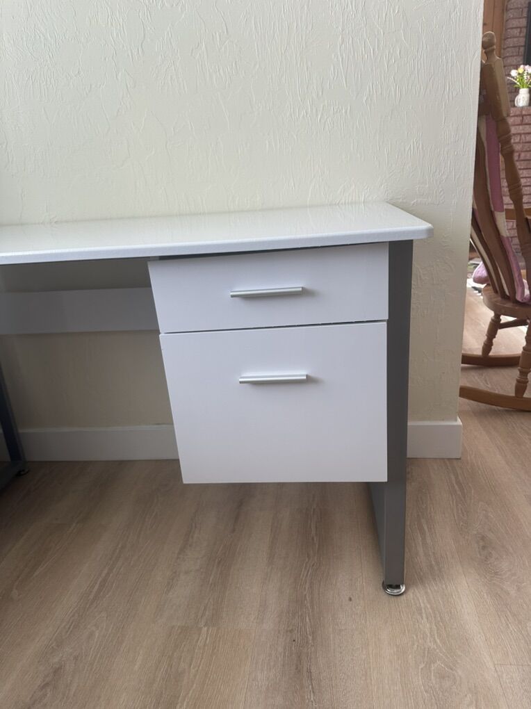 Zelle47.25 wide by 30.5 tall by 23.5 deep White Desk in great condition Priced to sell - moving soon