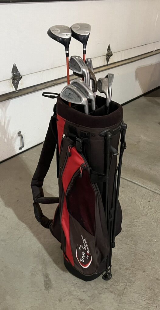 Used set, Wilson Power Source, has a Ping Eye 2 7 iron and a Wedge