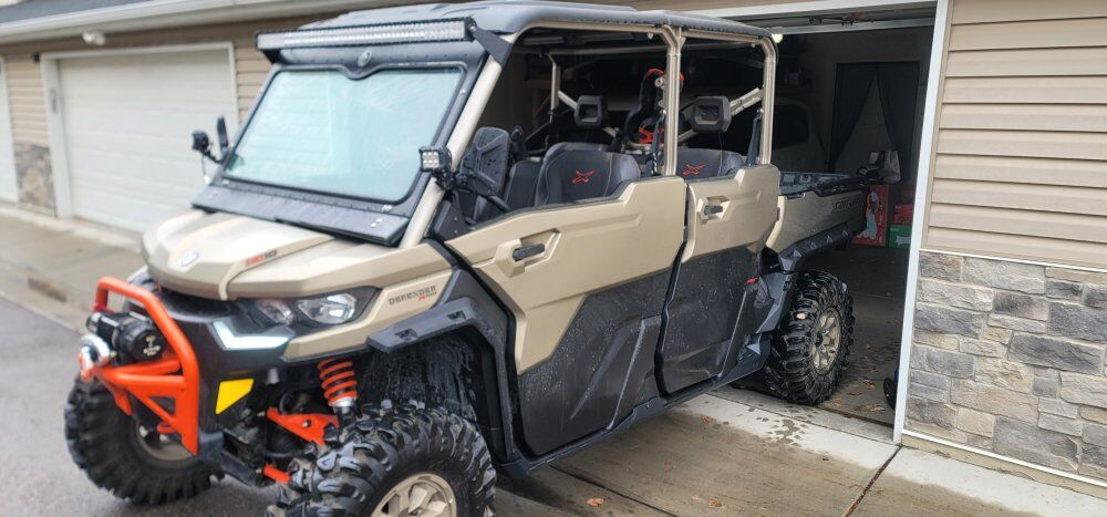 2023 Can Am DEFENDER MAX MR HD Great condition. Less than 2k miles on it. Added windshield (can be removed when wanted), street legal kit( blinkers, side mirrors, tags upto date, horn and lights), added light bar and 2 side bright lights for riding at night, storage container under seat. No a/c or heater
