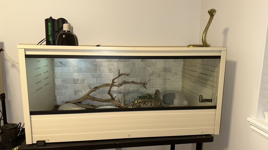 Enclosure size: Spacious front-opening habitat measuring approximately 4 feet long, 2 feet high, and 2 feet deep.