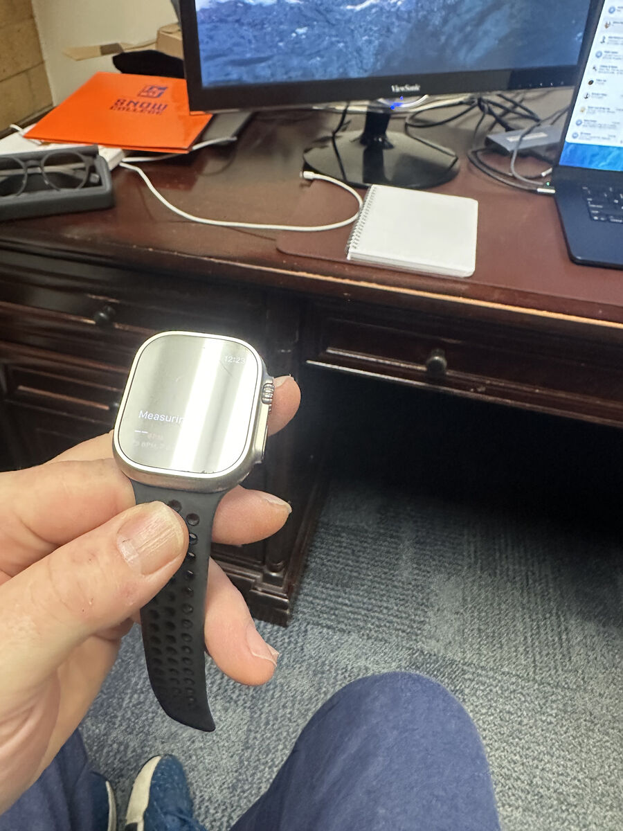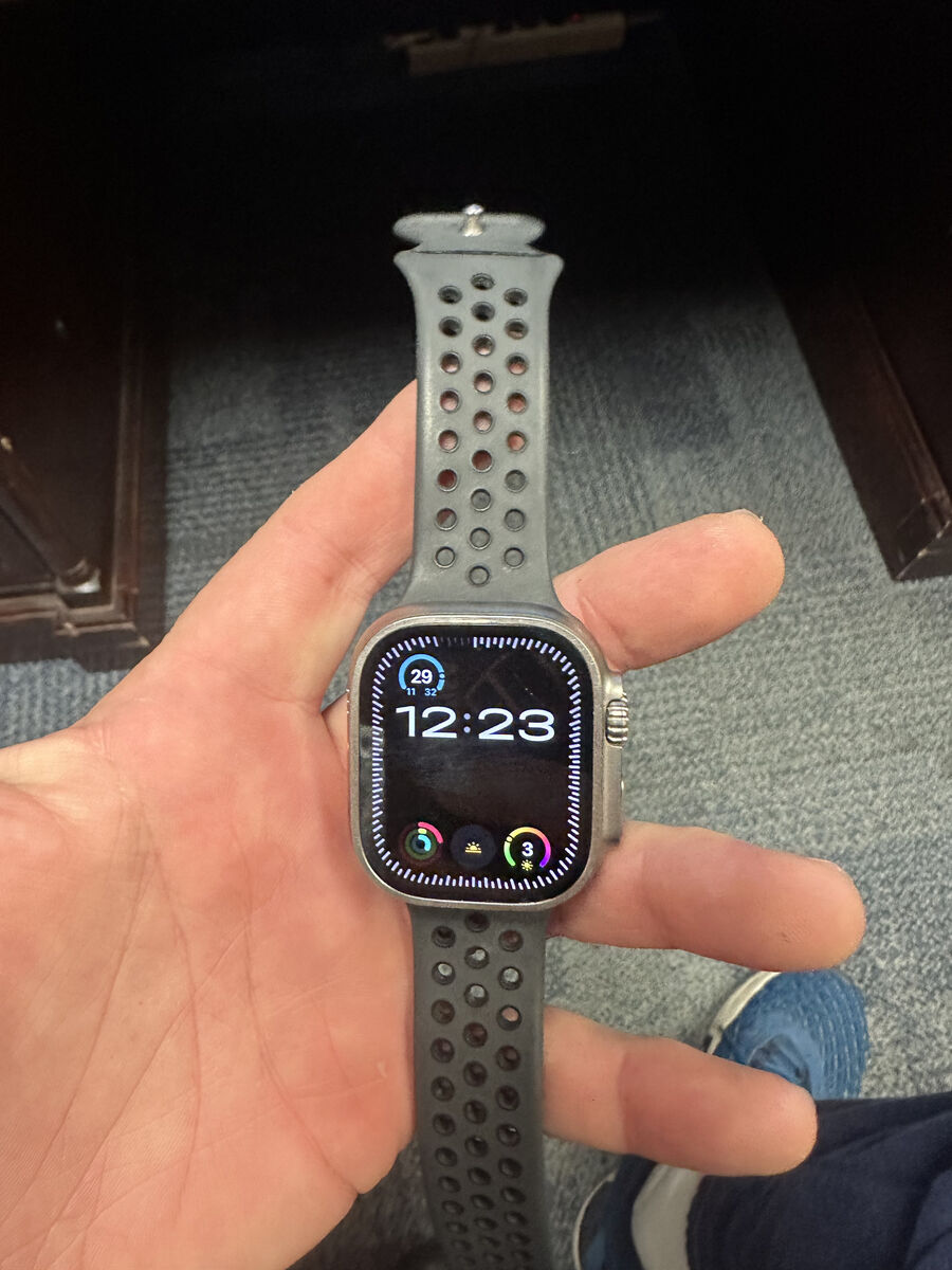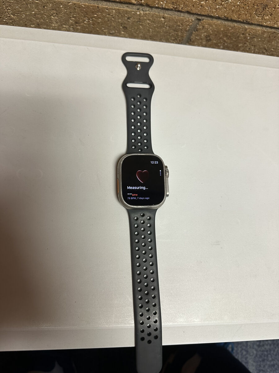 The Apple Watch Ultra 2 in Silver with a Black rubber band is a high-end smartwatch from Apple. It features a large 49mm titanium case and is compatible with iOS devices. This model offers a sleek design and advanced features for those looking for a premium smartwatch experience.