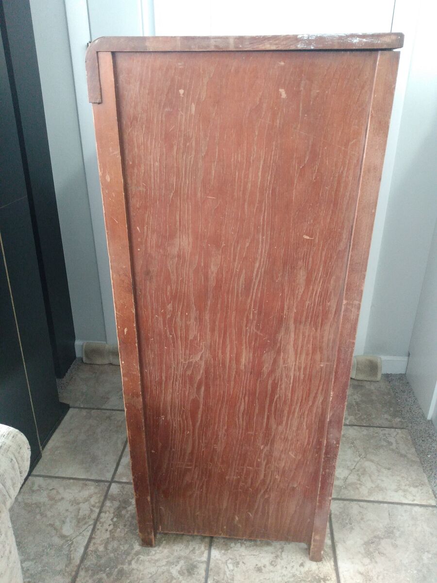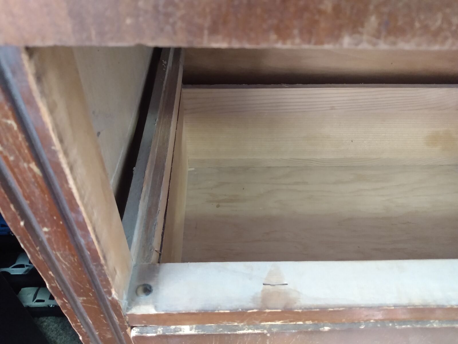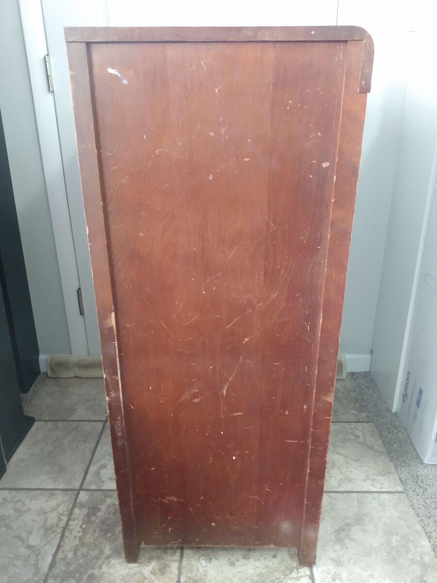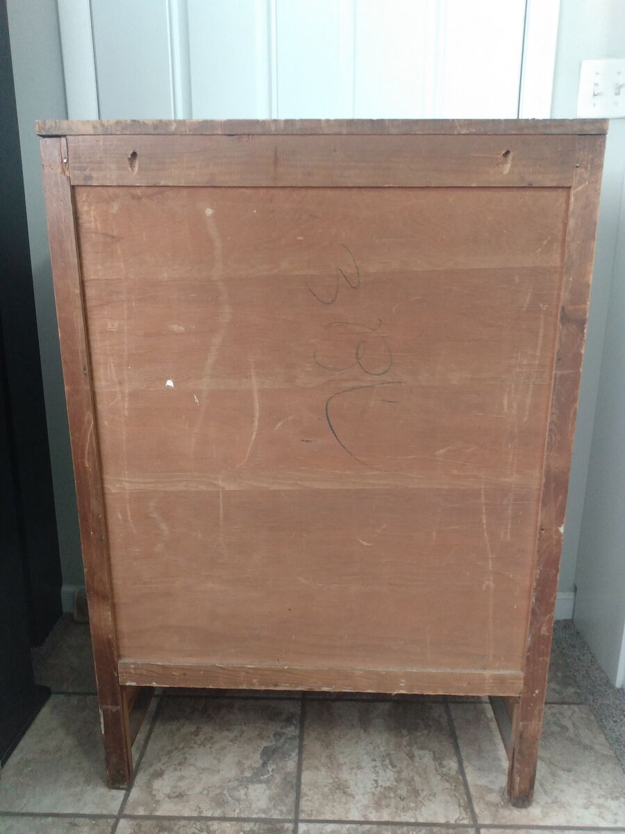 VenmoCirca 40's-50's with nicks, dings and scratches. Missing 6 of 8 metal drawer stops (pictured). Measures 44" x 30" x 18" Great restoration piece.