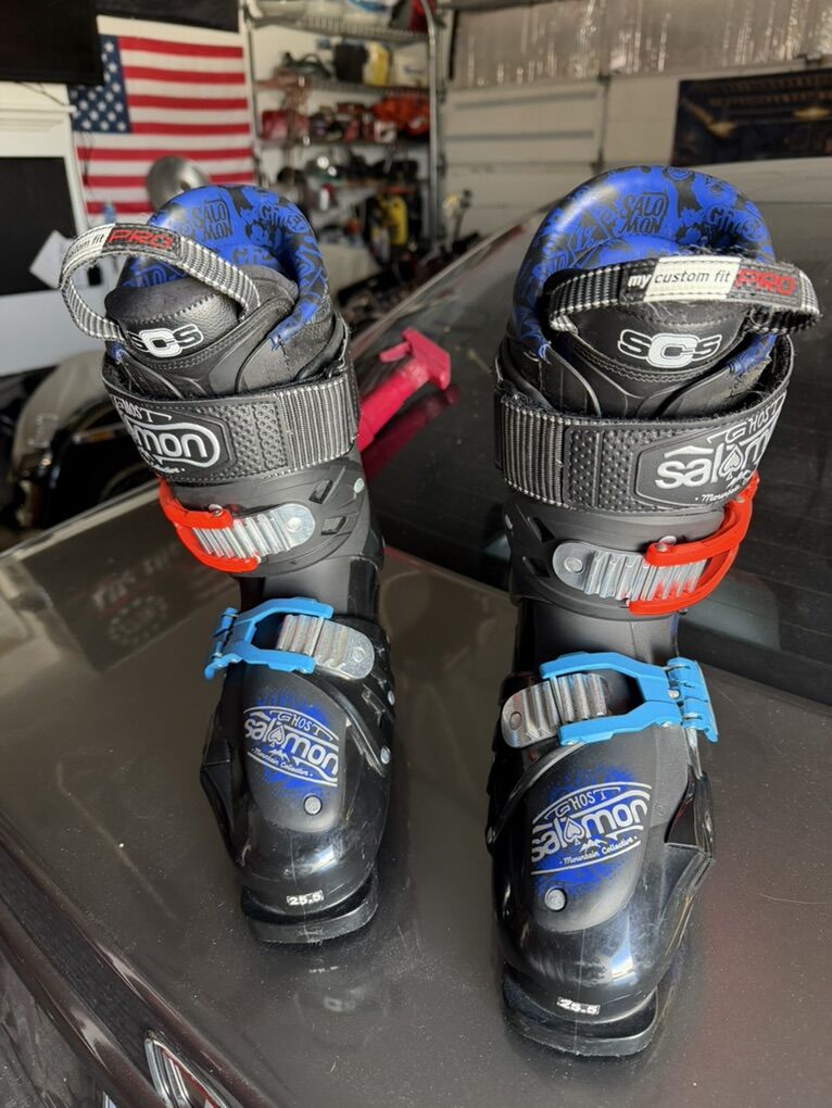 GooglePayFlex Rating: 90 (designed for advancing skiers). Technology: Features My Custom Fit liners and TwinFrame technology for a balance of rigidity and comfort. Features: Includes adjustable buckles and a power strap for a secure fit. Condition: These appear to be used, with some typical wear on the buckles and shell.