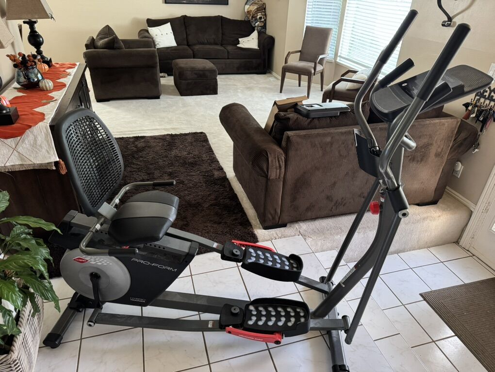Stand or sit. It’s an exercise bike and an elliptical trainer all in one. So smooth to use.