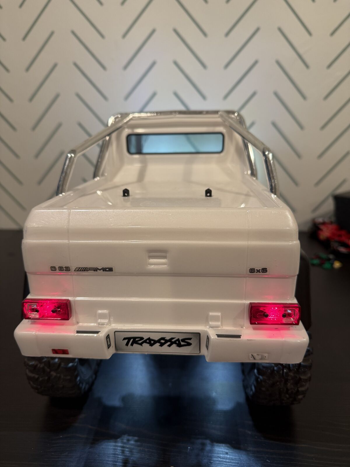 VenmoTraxxas 6x6 TRX6 Mercedes Benz Rock Crawler Comes with stock 5ch controller. You will need your own battery (XT6 connector) and charger. 2 speed transmission and locking diffs. Upgrades: Quicrun Fusion 540 spec 1800kv 2-in-1 brushless ESC-Motor Traxxas light controller module Traxxas body light kit Traxxas rock light kit