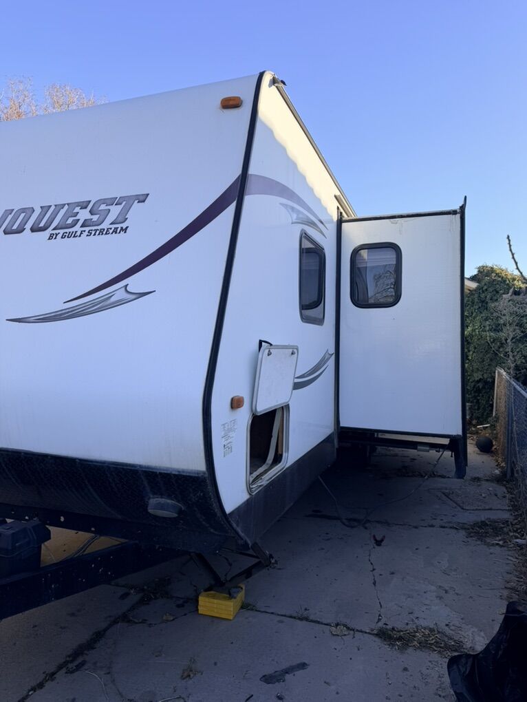 2015 Gulf Stream Conquest 279QBL – Bunkhouse Travel Trailer This is a solid, well-used 2015 Gulf Stream Conquest 279QBL that’s seen plenty of mountain trips around Utah. It’s not brand new and it shows some age, but the bones are good and everything important works. The undercarriage is solid, and the trailer is fully usable as-is. It will need some love over time, so this is a great option for someone handy or looking for a dependable trailer at a fair price—not a showroom unit. What works: A/C works great Heater works All systems functional Solid frame and undercarriage Known issues: Microwave does not work (not sure why) Electric tongue jack does not work One propane tank needs replacement (the other is good) If you’re looking for a reliable, used bunkhouse trailer and understand that a 10+ year old rig requires upkeep, this one’s worth a look.
