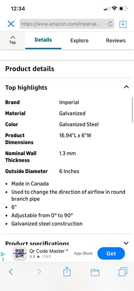 VenmoImperial Group Gv0296-C 90 Galv Adj Elbow 6- new!
