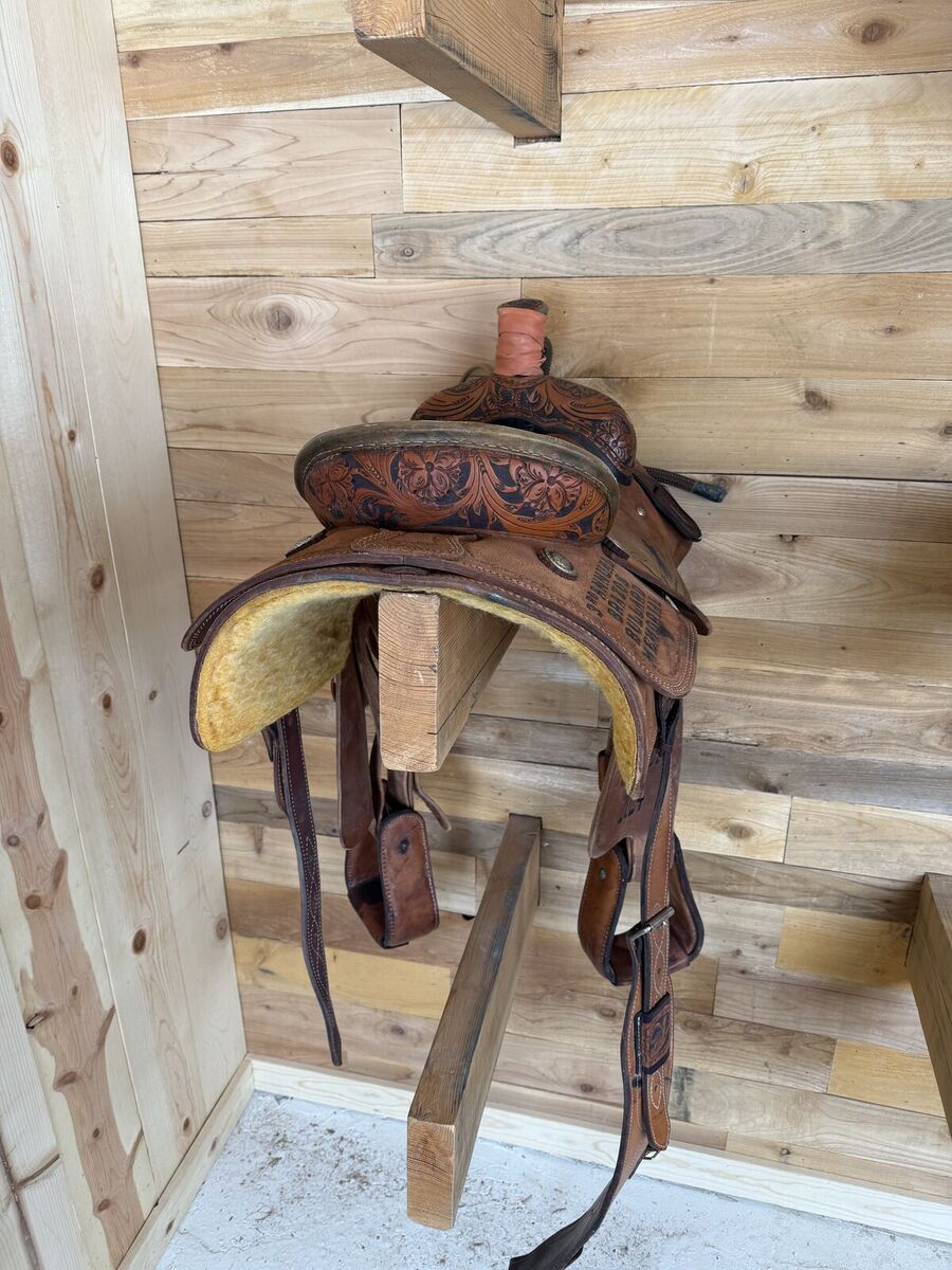 In great condition only used a couple times just been sitting in tack room! Nice deep seat and very comfy!! Definitely worth it don't pass this one up just cause it's a trophy saddle!!! 435-813-1509
