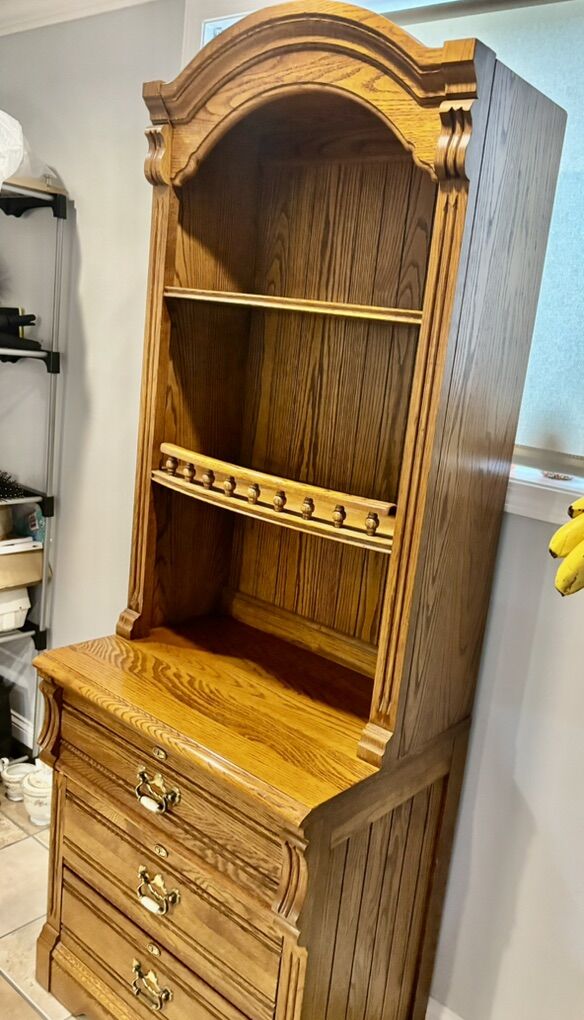 CashAppThis incredibly stunning oak hutch has three spacious drawers and stunning craftsmanship. It is in fantastic condition and will make an excellent addition to your furniture collection. Pick up in Sandy.