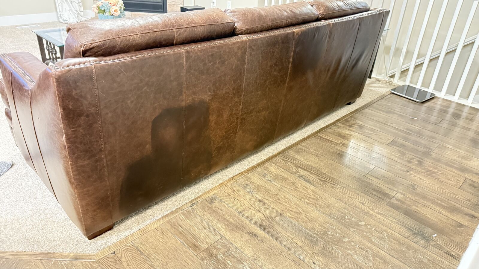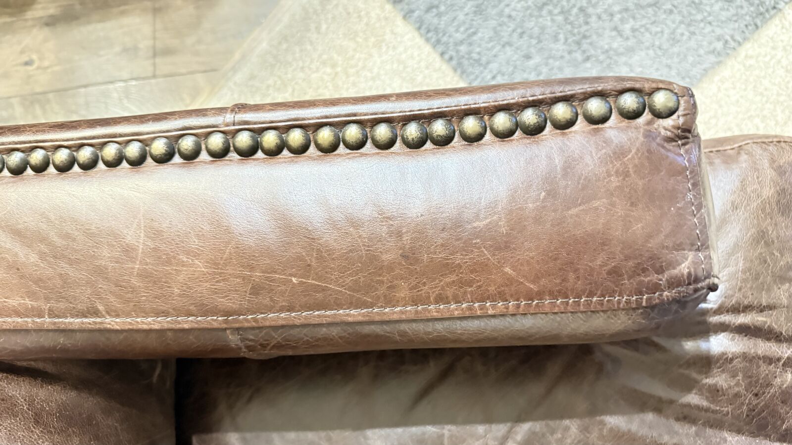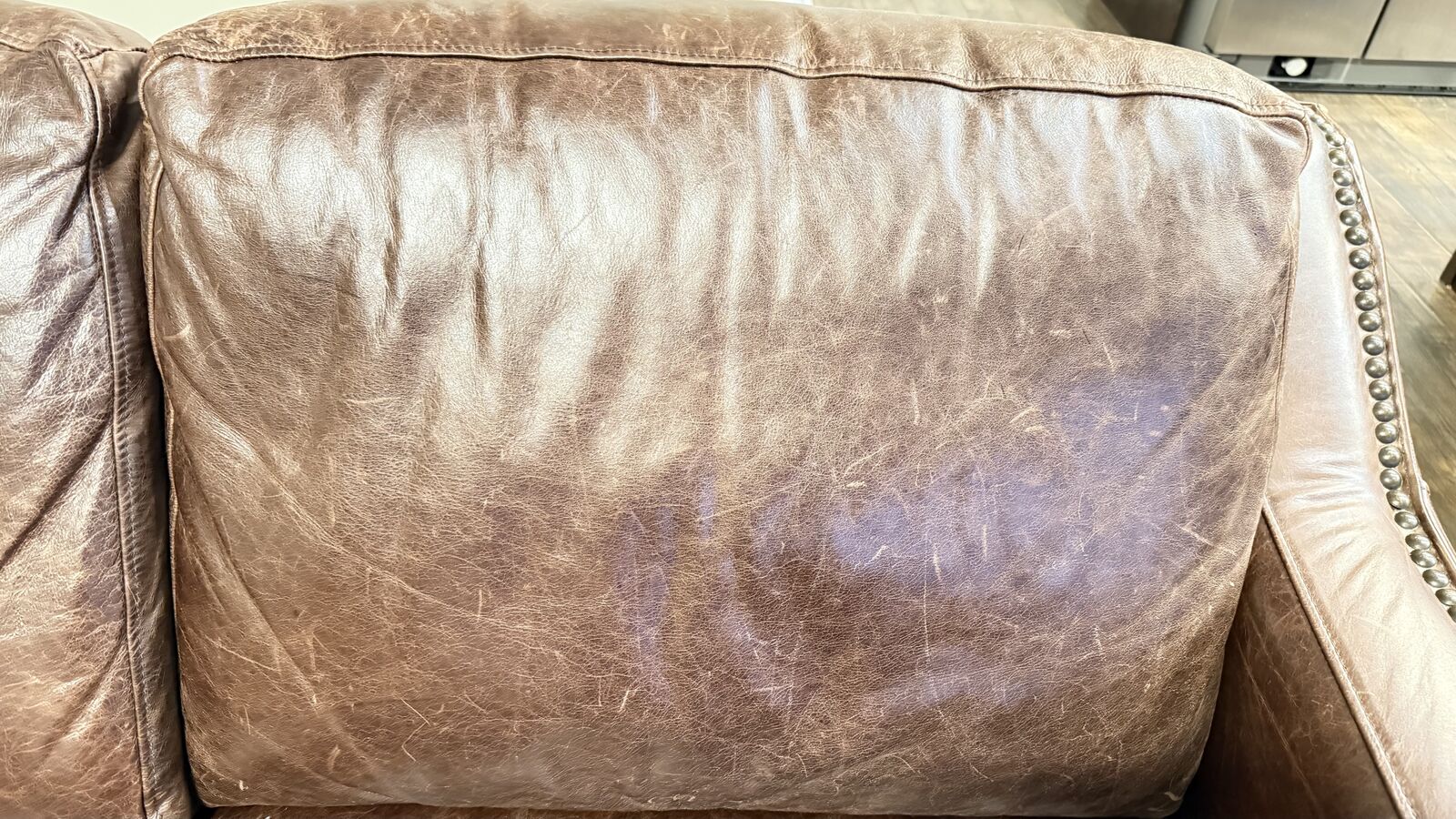 Stylish brown, leather sofa and two recliners. One recliner doesn't work but one does. The one that doesn't might need a new cord. Has that cool distressed look and nail head trim on the arms and base. Three seater couch. Bought at RC Willie. Moving and can't take with me. Call S Space $500 for all.