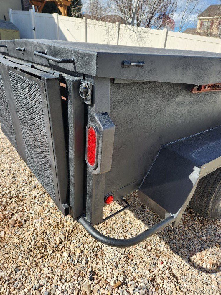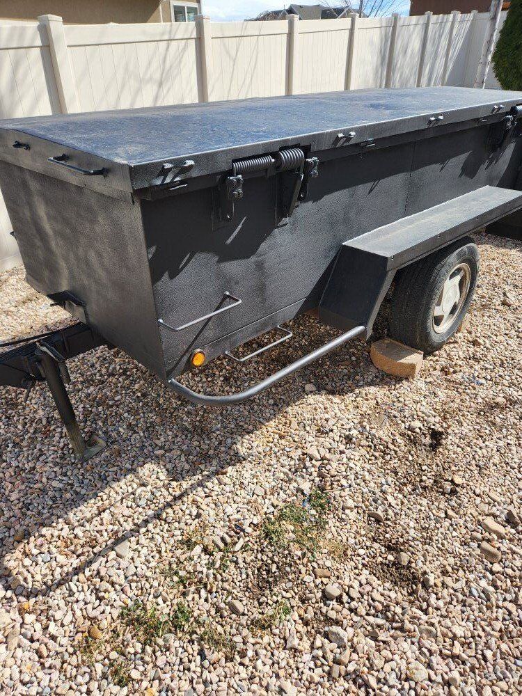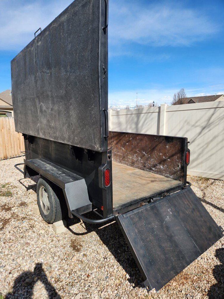 VenmoUnique Trailer. 48+” x 120+” x 24” inside dimensions, locking lid, makes great job site lock box. Bed dumps, rubber mats in bottom of bed, Tailgate is a bi fold, folds down or out for a ramp. 4000# axle with electric brakes, New electrical and lights. 18 months old tires. Under mounted spare tire. Folding/removable tongue, High lift jack. bolts to tongue and dumps bed. I'd be happy to show you all the features. Come take a look, and make me a offer. 1650 OBO