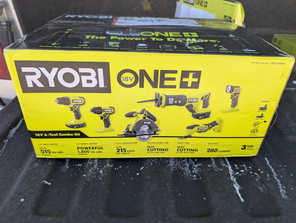 VenmoBrand new in the box Ryobi ONE+ 18V Cordless 6-Tool Combo Kit with 1.5 Ah Battery, 4.0 Ah Battery, and Charger. Package number PCL1600K2. Asking $330. Text if interested 801-903-8337. I also have a brand new battery starter kit with a 4ah and 2ah battery and charger that retails for over $200. I would do $450 for both the 6 tool kit and battery starter kit if interested.