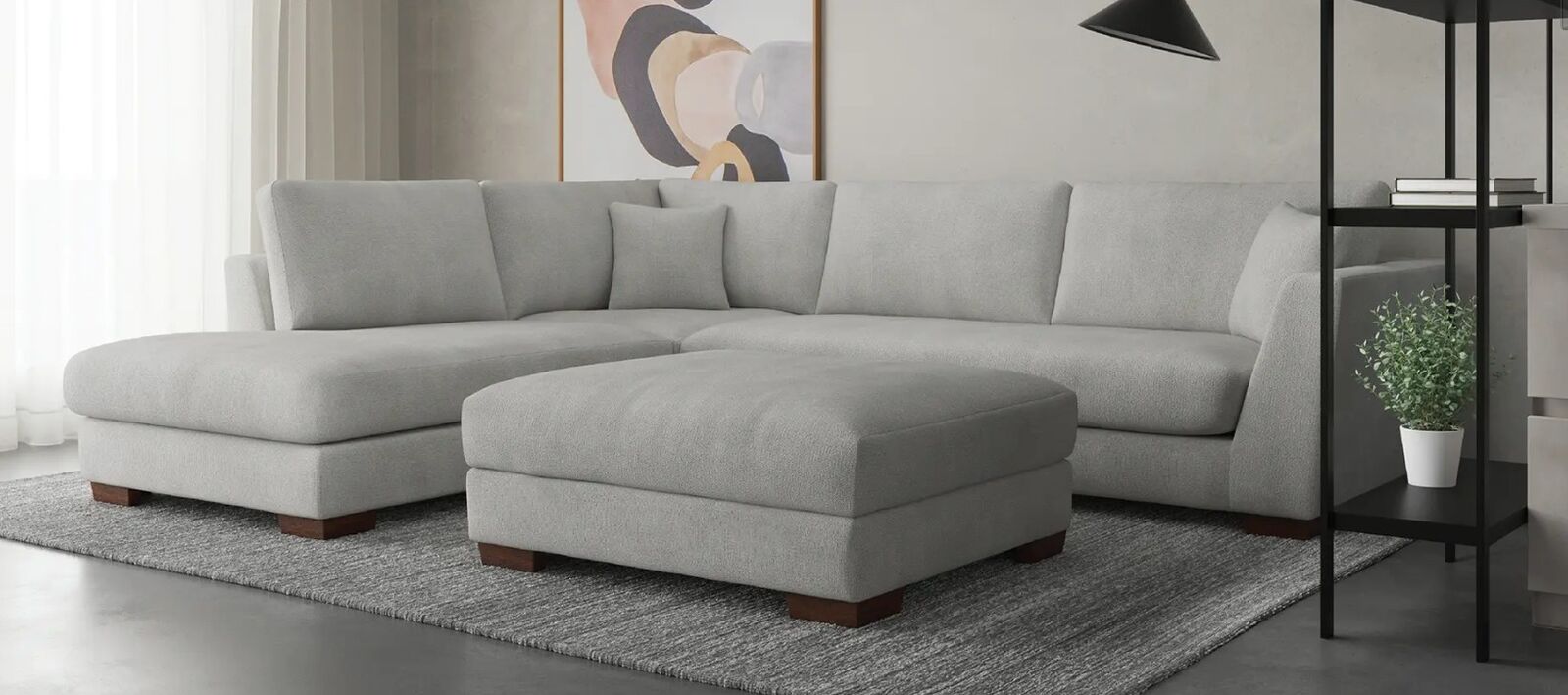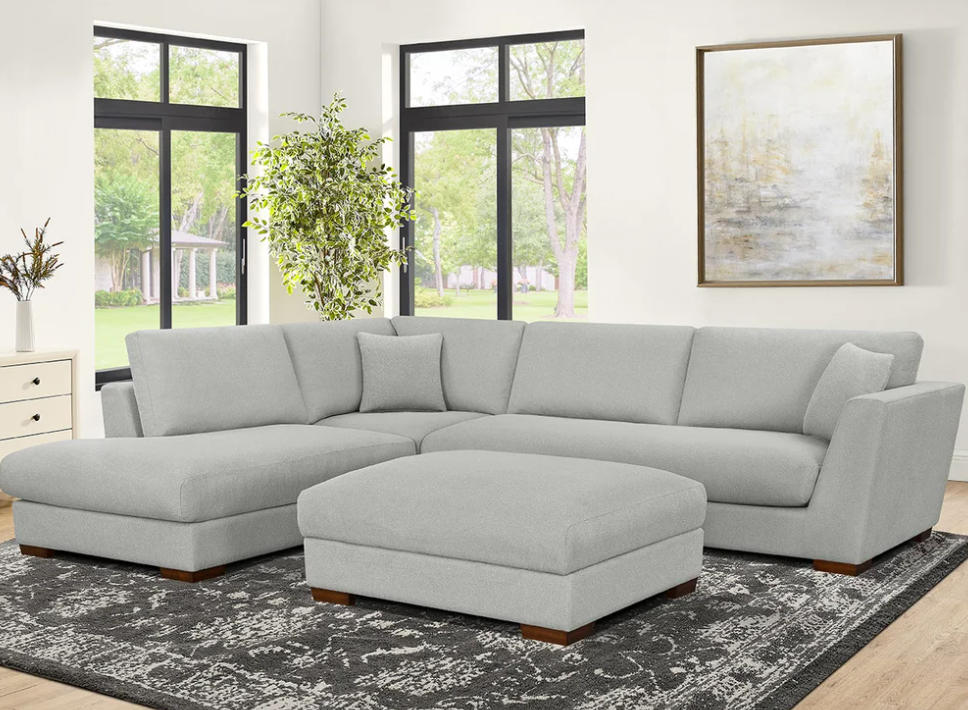 The Henredon 3 piece sectional - a statement piece where indulgent comfort meets contemporary style. Draped in luxuriously soft 100% polyester upholstery, crafted with eco-conscious REPREVE® fibers, this sectional brings both sophistication and sustainability to your living space. Sink into deep, plush seating with feather- and fiber-filled cushions, while the loose, reversible back cushions offer effortless upkeep. The generously sized storage ottoman keeps your space tidy in style, and the solid wood, block-style legs add a bold, modern touch. This is the ultimate blend of lasting durability and refined design—perfect for someone who craves comfort and chic flair.