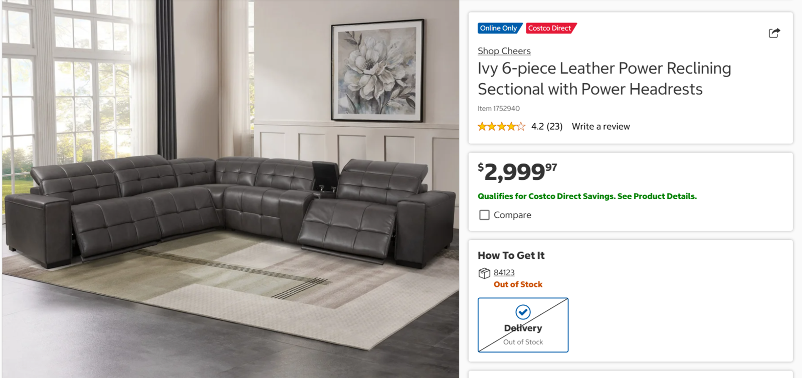 Experience next-level comfort and style with the Ivy leather sectional! Its sleek, low-profile shape creates a spacious feel, while its contemporary design turns your living room into a showpiece. Three power reclining seats, adjustable headrests, and intuitive controls that let you find your perfect position in seconds. Stay connected with USB and USB-C charging ports on each arm, along with a soft close storage console featuring extra USB ports and removable, dishwasher-safe cup holders. Modular flexibility means you can arrange the console and armless chairs to suit your space. With extra-wide seats, distinctive tufting, and plush padded arms, the Ivy sectional delivers stunning looks and luxurious comfort, topped off by an innovative zero gravity recline for effortless head and footrest adjustment. Treat yourself to the Ivy—where form and function meet in pure luxury.