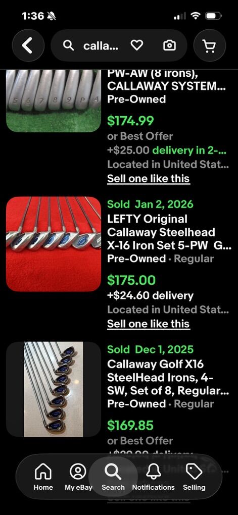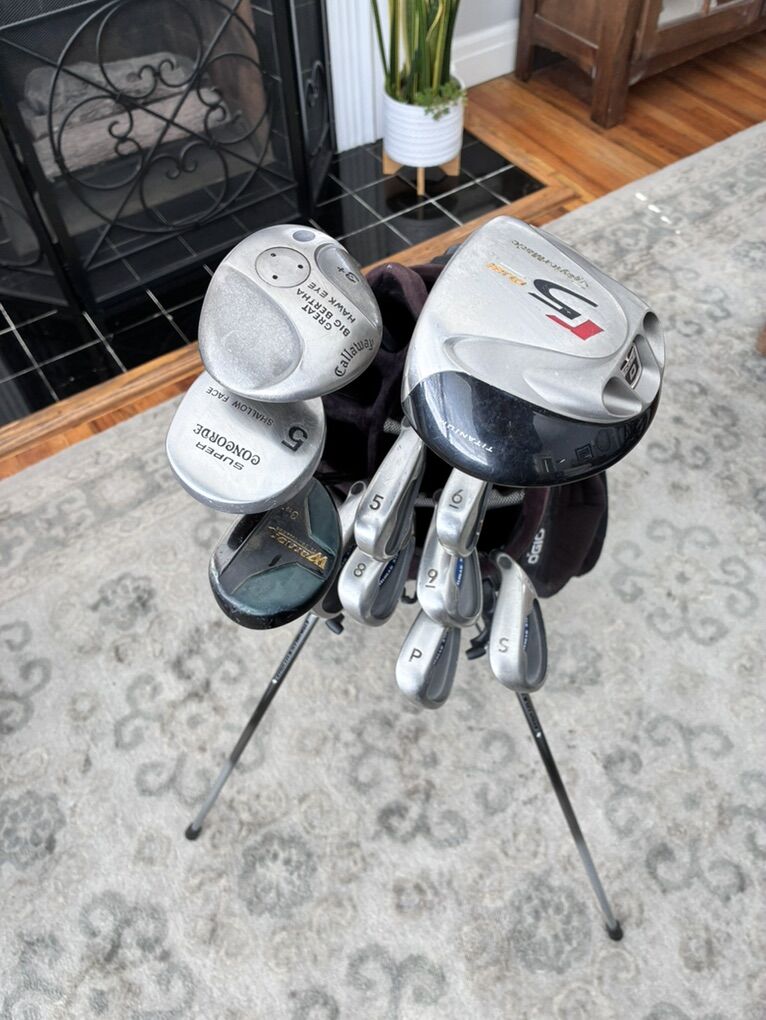 VenmoVery nice starter to intermediate set of men’s standard length golf clubs for sale. See pictures for comparable sold eBay pricing. Set includes Taylormade driver, Callaway 3 wood, Nickent 5 wood, Warrior 3 hybrid, Callaway X-16 cavity back irons 5-sw with NEW ($60 dollar value) grips, a blade putter, Nice Ogio golf bag, golf balls, tees, ball markers, non matching head covers etc. Set has everything you need to play some golf. Selling these for a friend who recently upgraded. Message or text Lorin 801-386-0027 if interested.