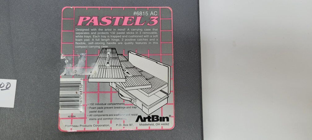 Artist grumbacher soft pastels . Includes the art bin 3 carry case and grumbacher pastels. The case has three removable white trays.All in good condition.