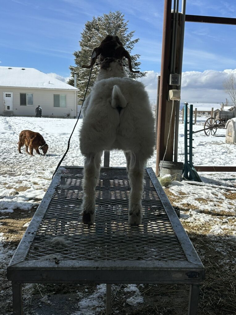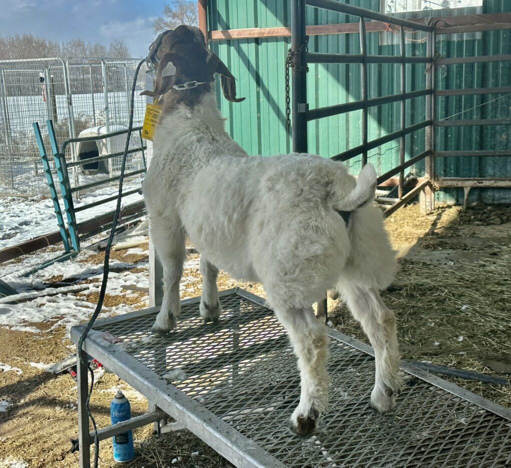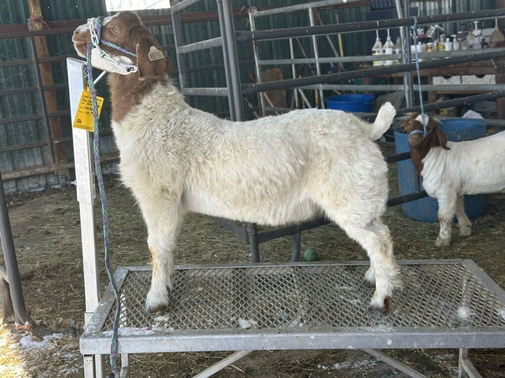 $400 for this is a June 2025 wether by 1369 he is halter broke and very friendly. Ready to go on grain and get shown or just be someone’s pet. He was bottle fed so he is extremely friendly, loves people and comes halter broke. He would be perfect for a young showman that their parents want an easy project for them to get started and love doing this. Asking $400 obo I paid $900 for him so anything I sell him for will be a real steal at this point!