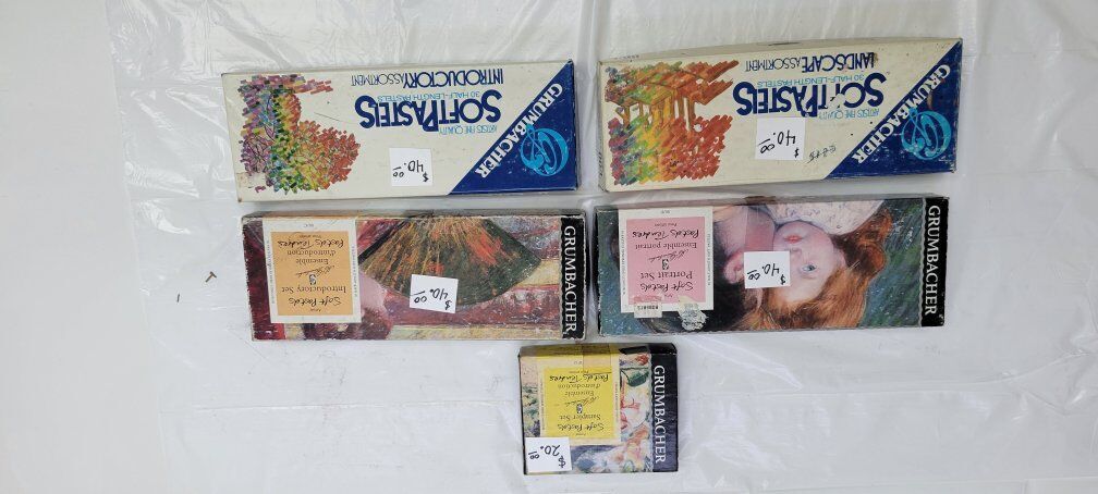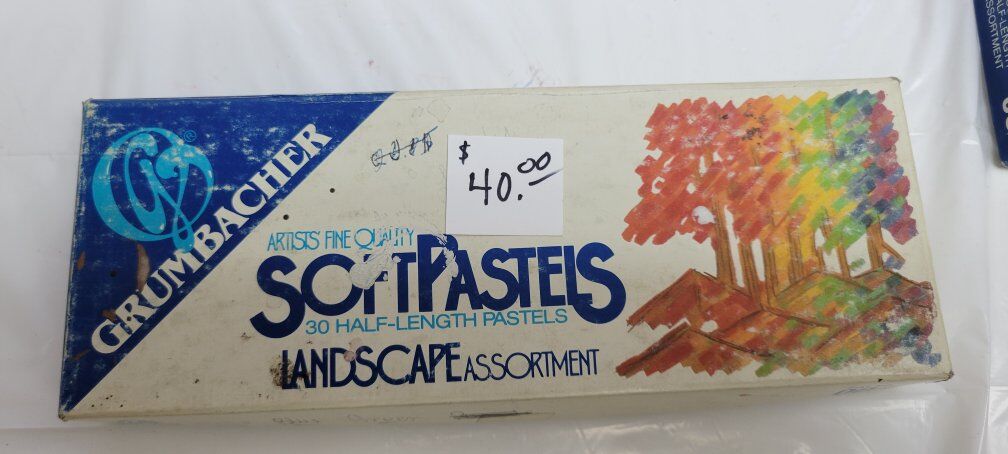 Artist grumbacher soft pastels. Some are used some are new , but all in good condition. Small box is twenty dollars , other 4 boxes are forty dollars each.Or buy all five boxes for $150 dollars.