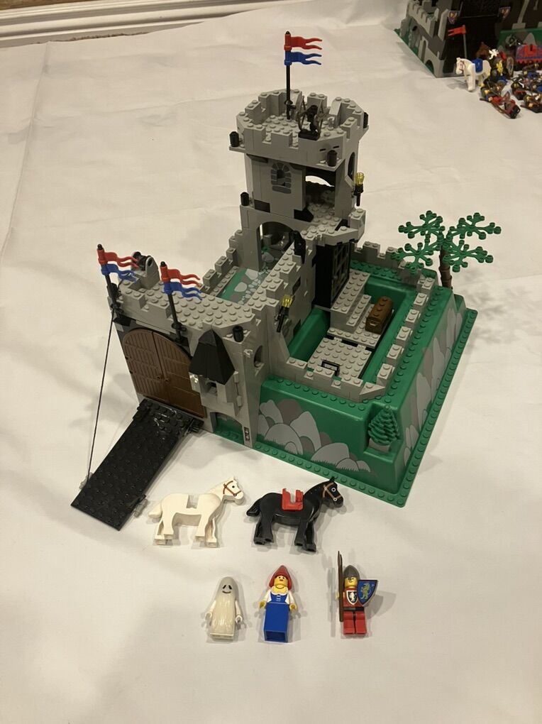 Individual prices are listed below (they add up to $3300). Or I’m asking $2500 for the whole lot. However, in addition to the 38 sets the buyer of the entire lot will also get all the other related Legos that don’t directly belong to the sets, including: —25+ castle related minifigures and 25+ pirate related minifigures plus a number of extra heads, torsos, hats, helmets, armor, and other accessories (this brings the total number of minifigures in the lot to over 160). —4 extra raised baseplates for castles. —13 flat baseplates —a large collection of extra cannons, boats/rigging, treasure boxes, flags, doors, gold coins/treasures, weapons/shields, animals, plumes (including a dozen loops of partially unpunched plumes), etc. —a bag (1.5 lbs) of loose bricks including extra castle walls, arches, slopes, pillars, plates, etc. —a set of sails for set 6243 Brickbeards Bounty —10 or so castle/pirate manuals that belong to sets I don’t have.