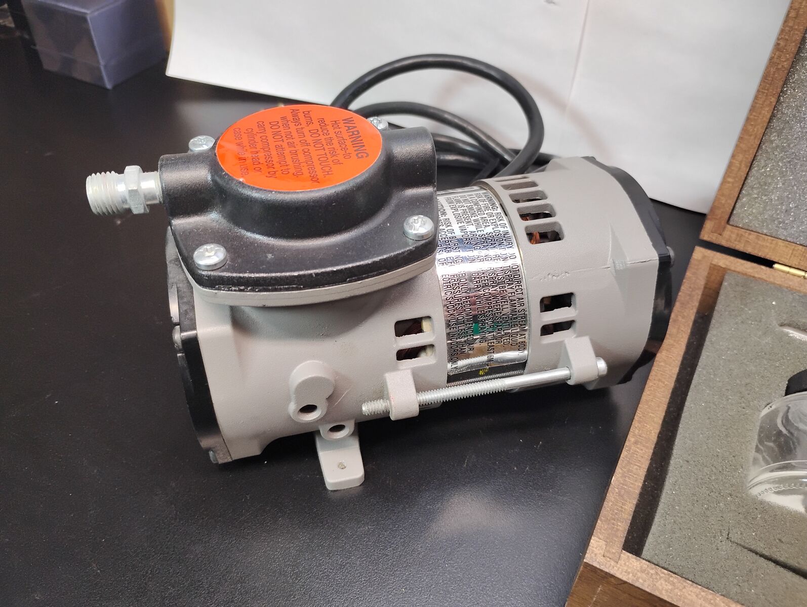 Compressor: Model 80-2 "Whirlwind II" is a 1/20 HP, oil-less diaphragm air compressor designed for hobbyists, delivering roughly 23 PSI maximum pressure. It operates on 115V/60Hz, featuring a 2.5 amp motor, a compact, lightweight design,