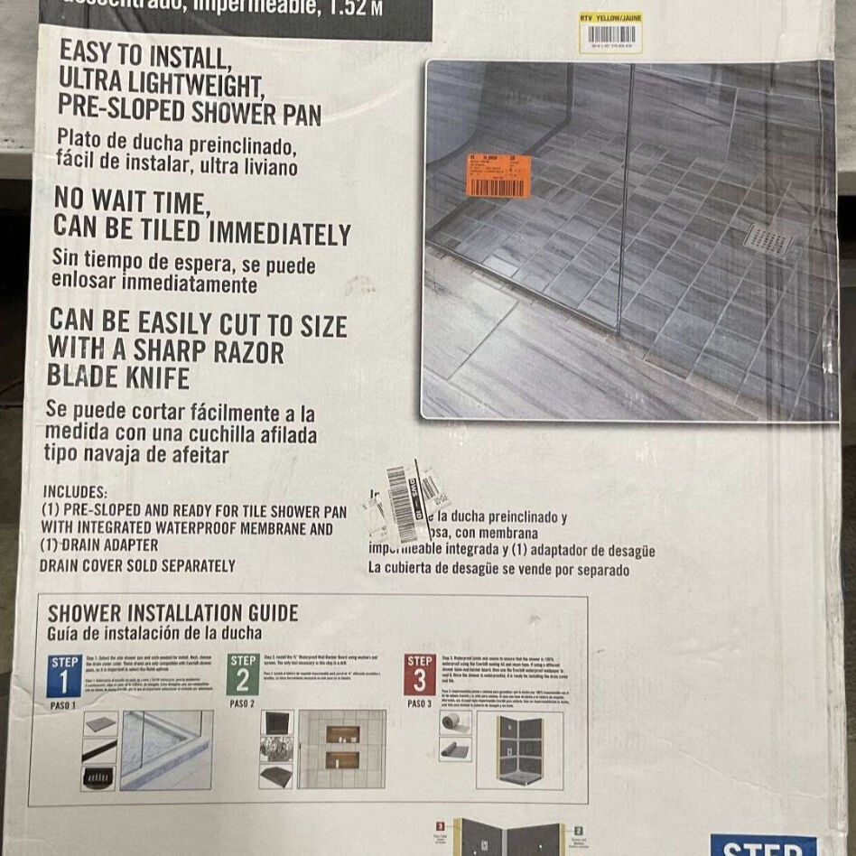 Watershield Shower System 36 in. x 60 in. Waterproof Center Drain Shower Tray With Drain Assembly