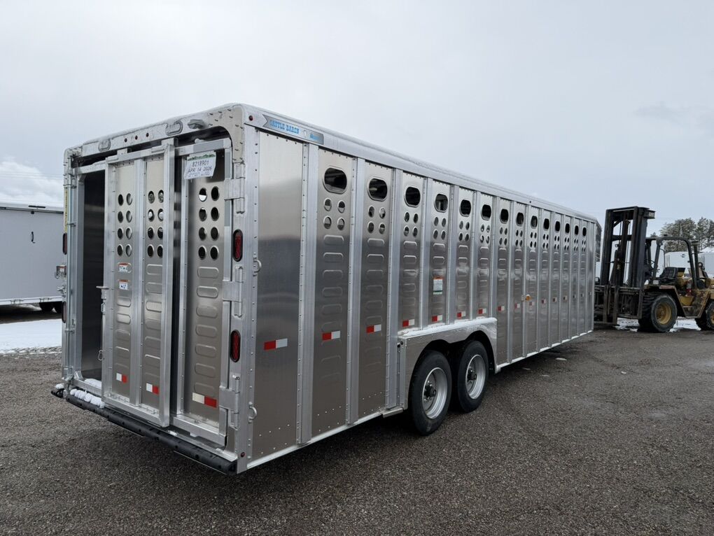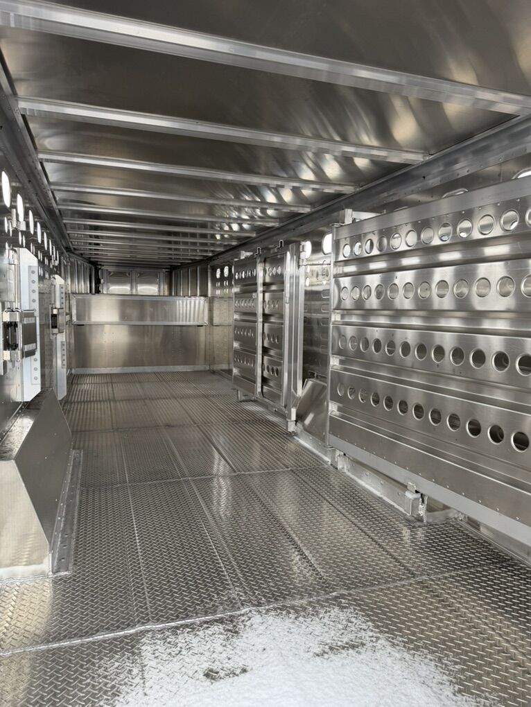 (2)8,000lbs Axles 52 Escape Door (2) Cut Gates Tie Loops Interior and Exterior Flat Floor 17.5 Solid Wheel 16 Ply Tires