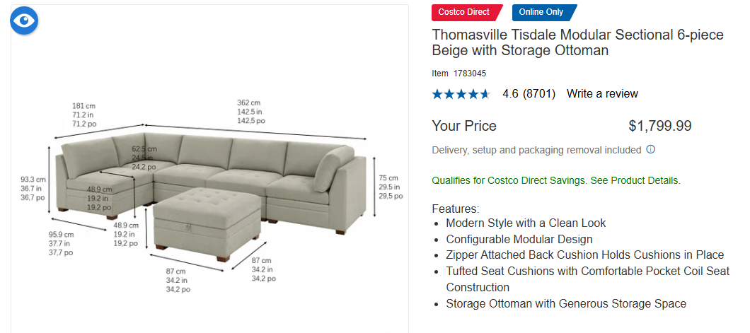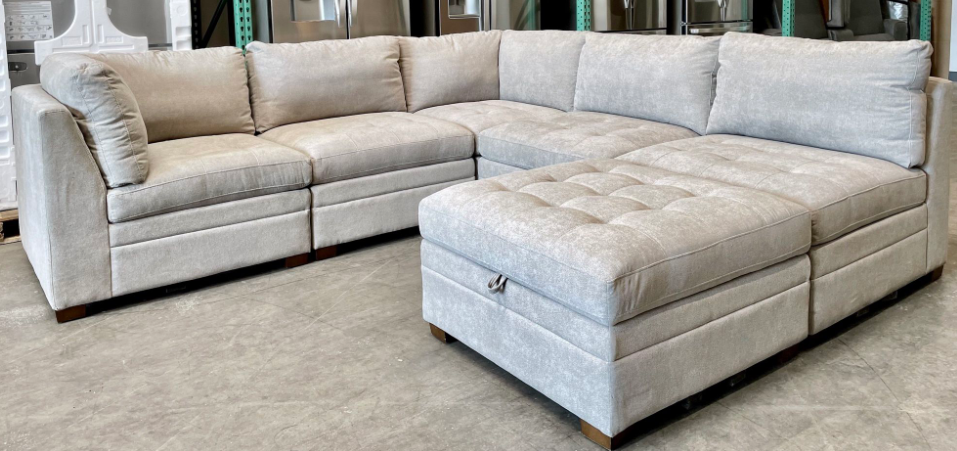 The ever so popular gray Thomasville Tisdale 6 piece modular sectional! The modular design of the sectional allows you to easily rearrange the individual pieces to adapt to your changing needs. Create an L-shaped configuration, a chaise lounge layout, or separate the pieces for standalone seating options. The endless possibilities make it versatile for any living space!