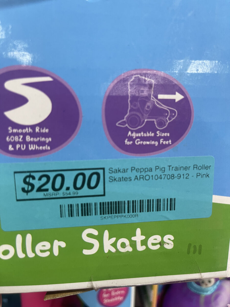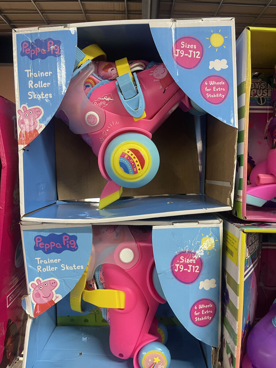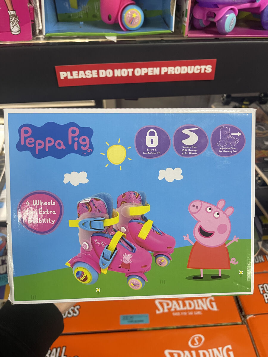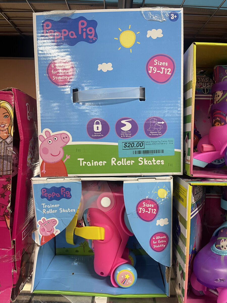 ApplePaySakar Peppa Pig Trainer Roller Skates, size J9–J12. Designed for beginners, these fun and colorful skates are perfect for kids learning to roll with confidence. Only $20!