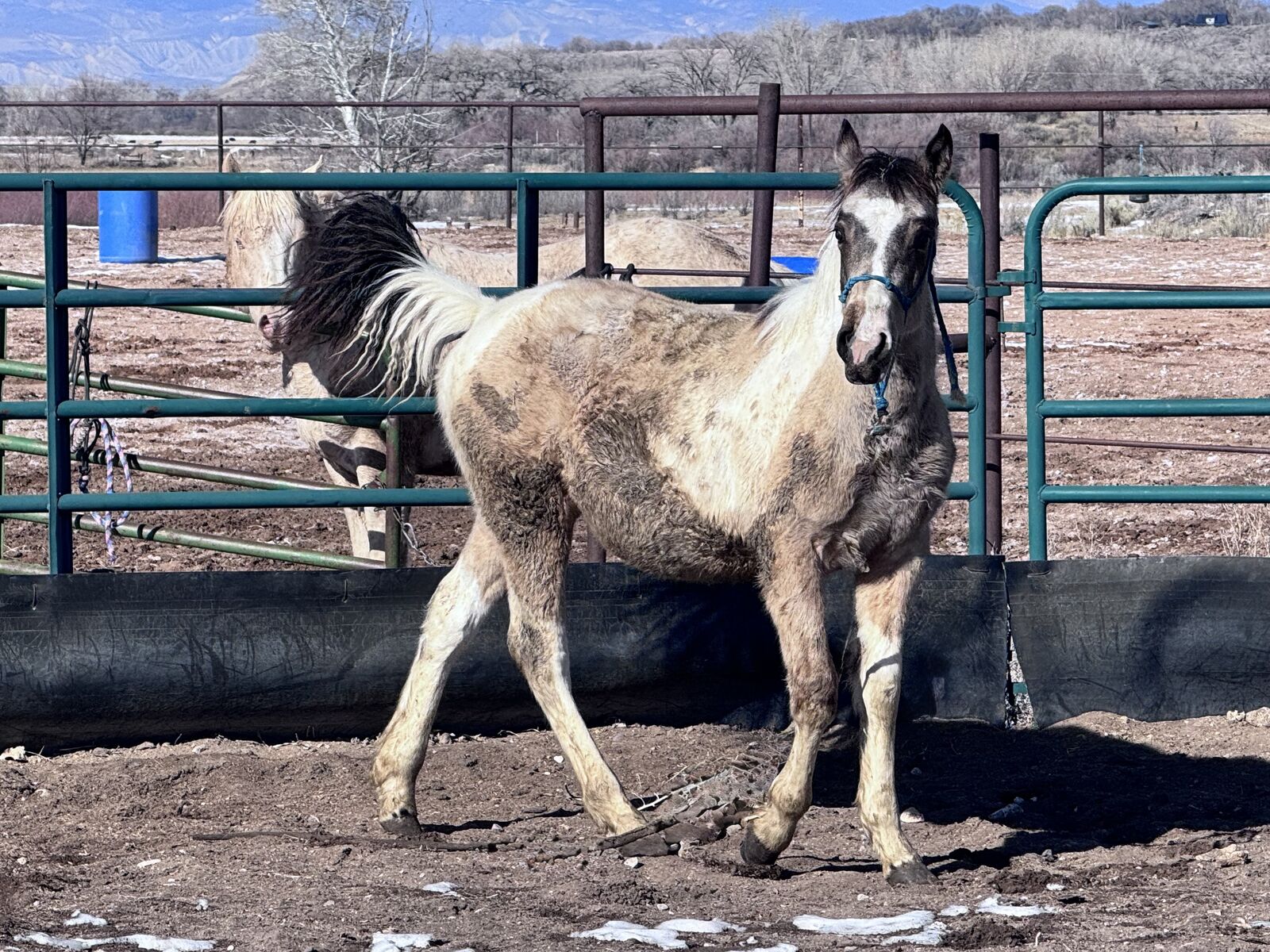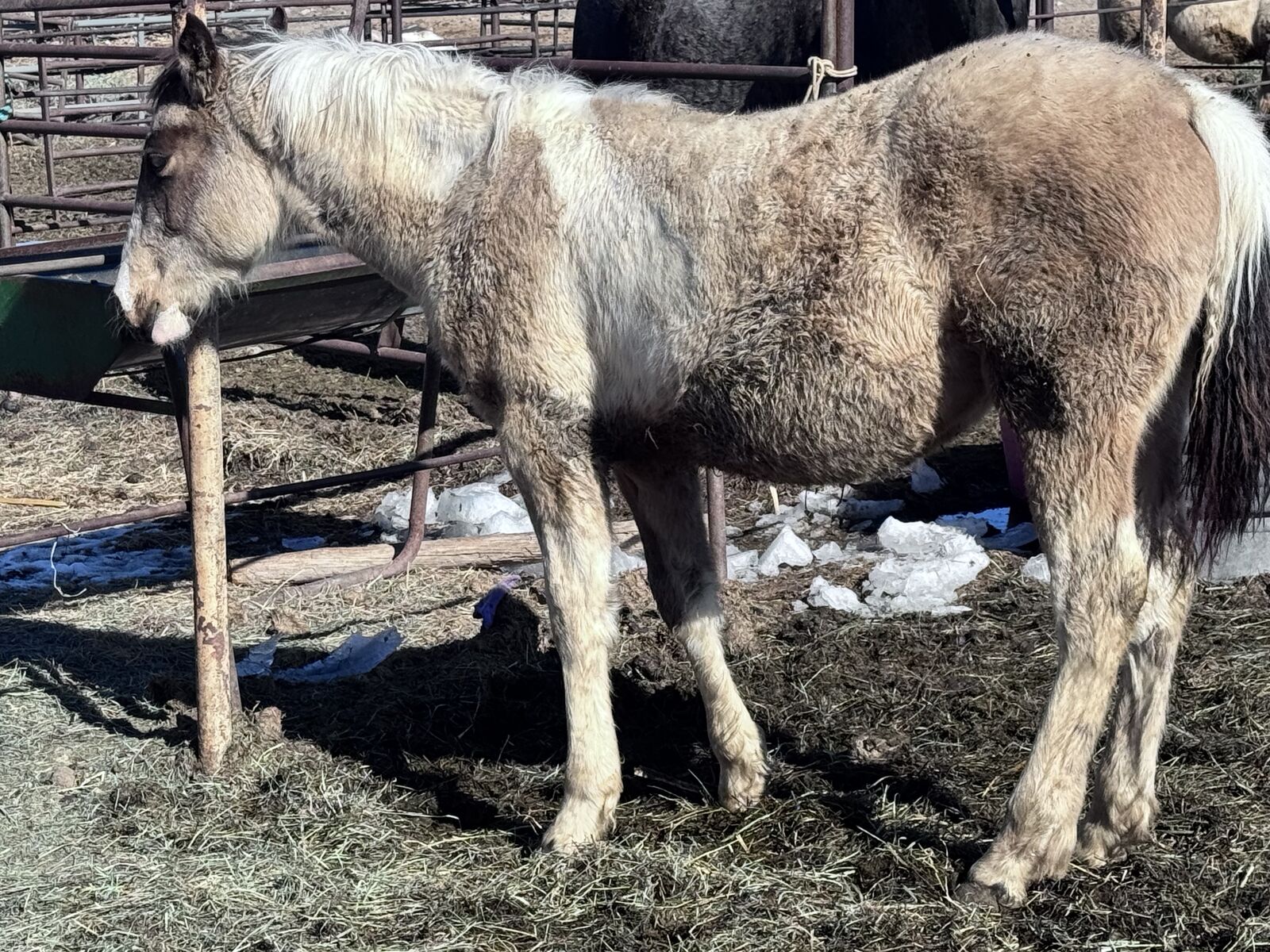 1/4 draft grade filly. She is a beautiful buckskin paint with a big blaze! She should mature to a good 15.3h with a lot of bone. Her sure is a Percheron cross and dam is a paint. She is friendly and easy to work with. Halter broke, ties, and learning to have her feet handled.