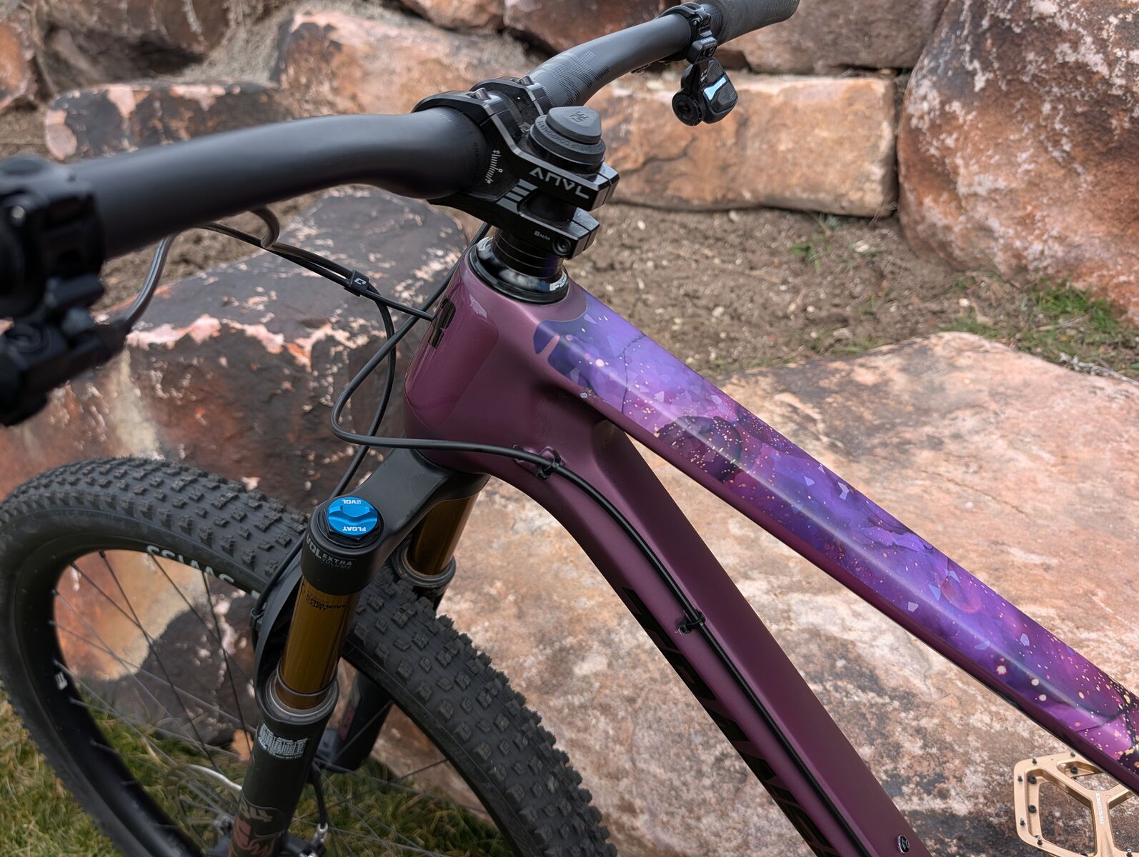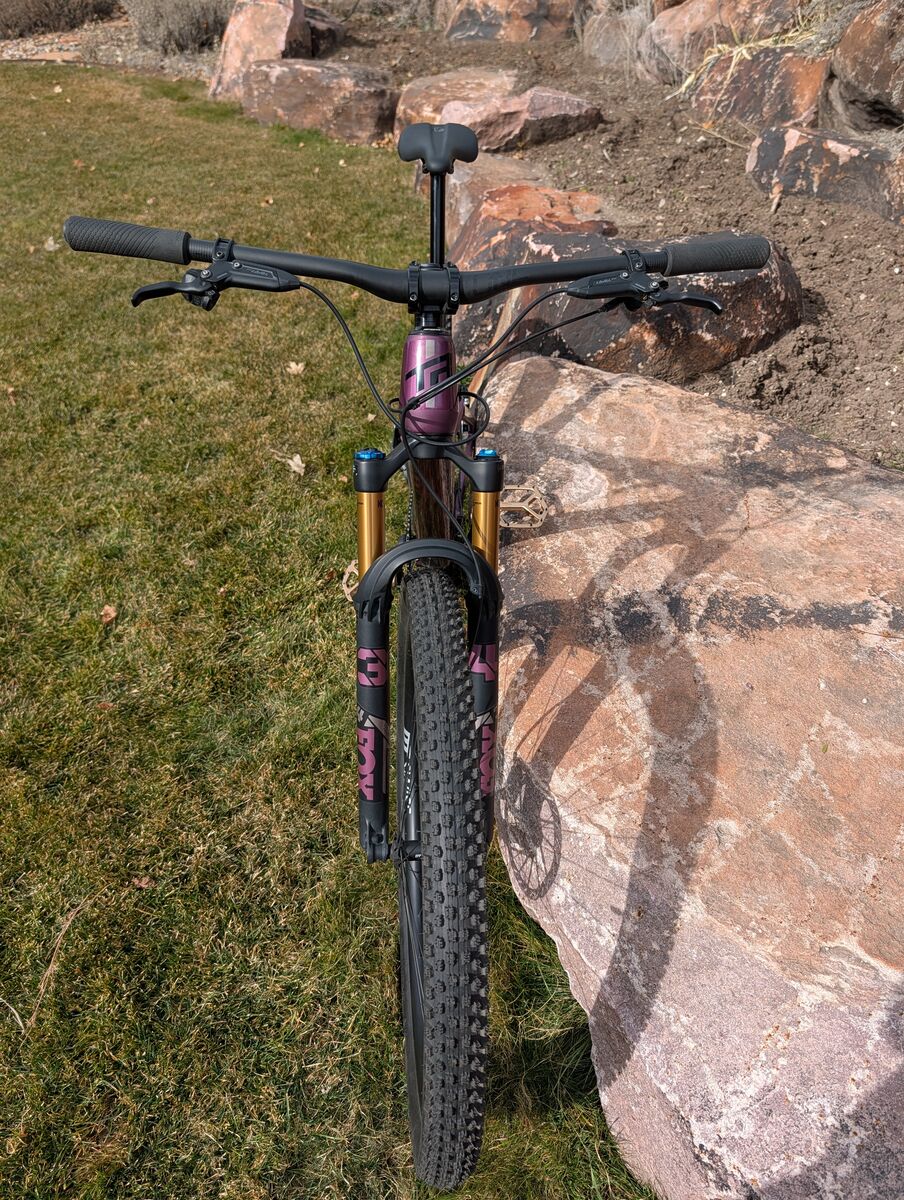 VenmoMy husband bought this bike as he really liked mine and thought it would work for him for most of the trails we ride. After riding this bike intermittently with his bigger travel ebike he realized that he wanted/needed a bigger travel bike. We added a larger damper to the fork taking the travel from 120mm to 130mm. Still not enough travel for where he wants to sometimes ride with his buddies. The 120mm damper will be sold with the bike. The bike is amazing. I encourage you to read/watch the reviews. As a short travel bike rides more like a mountain than and XC bike, although some people race on it. The bike was purchased in January, but he did not ride it until April. I would guess the bike has less than 400 miles on it. There are a few surface scratches. This is a very light bike, 27 lbs without pedals (included)! We added some frame wrap, mostly to distinguish his bike from mine, but if you don't like the cosmic pattern this can be removed. We added a OneUp EDC tool to the headset for multitool quick access and Ground Control tires (better for our area (these are new, one 10 mile ride on these), other than that the bike is the stock X0 build that you can find on this website: https://www.transitionbikes.com/Bikes/Spur