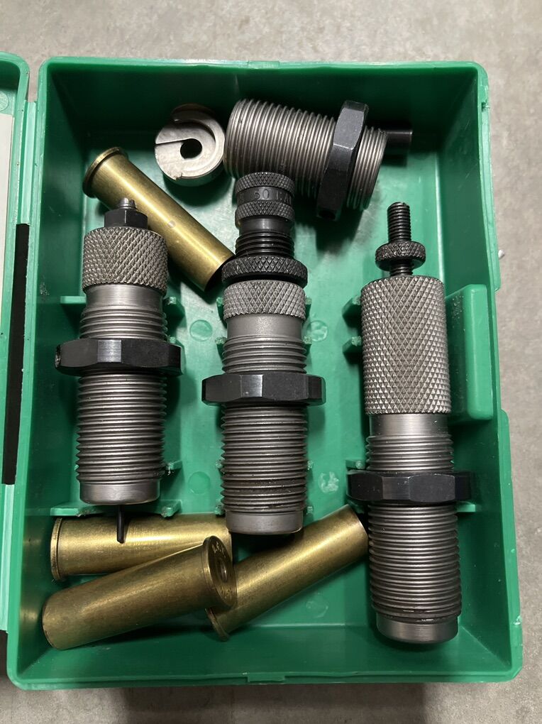 As new RCBS 50-70 die set, trim die, shell holder and 4 good brass. $65-10%=$59. I will ship for postage costs. Please see my other ads. Thanks, Joe.