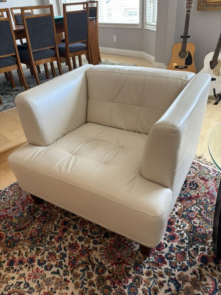 ApplePayPremium leather sofa, chair, and chaise. Ivory colored.