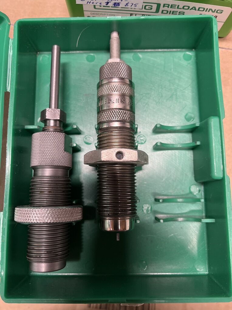 Redding set of 35 Whelen IMP 40 degree. $117 at Graf &sons. Here $75-10%=$68. RCBS box has a Hornady 35 cal neck size die for $20-10%=$18.00. And an Easton R&T co 35 Whelen F L sizing die. $20-10%=$18.00. I will ship for postage costs. Please see my other ads. Thanks, Joe.
