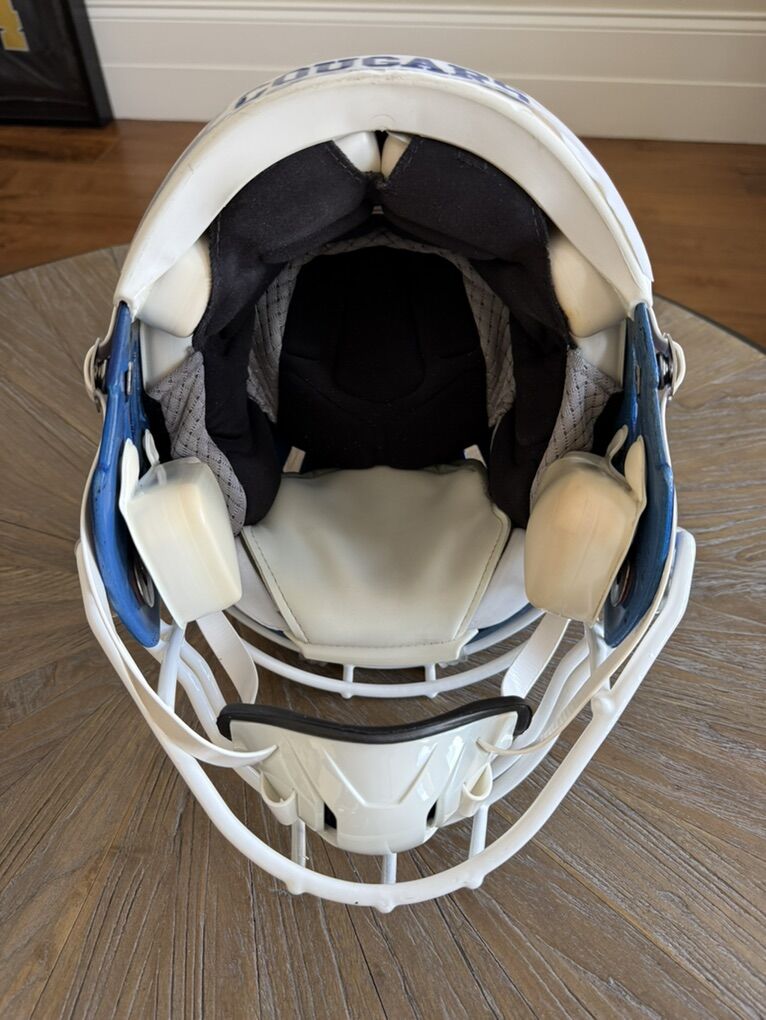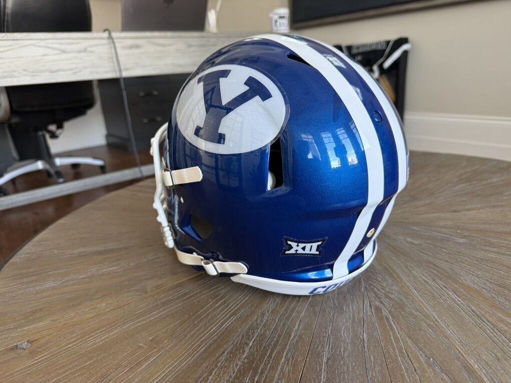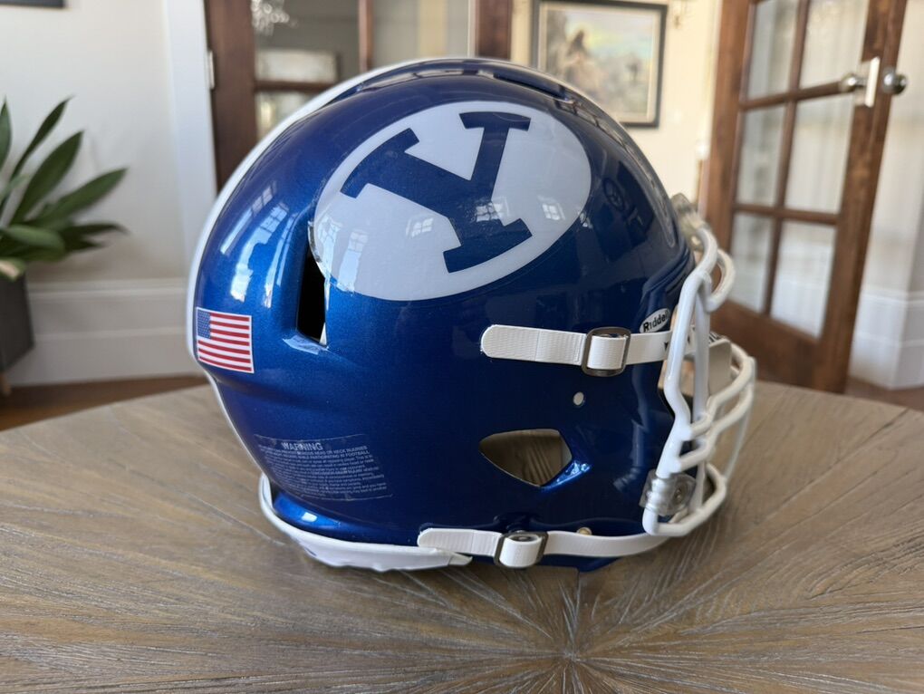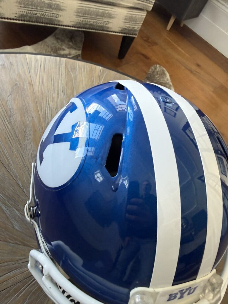 VenmoGreat looking royal blue football helmet. Looks great wherever you put it. It has a super small paint drip on the right side. Asking 225obo