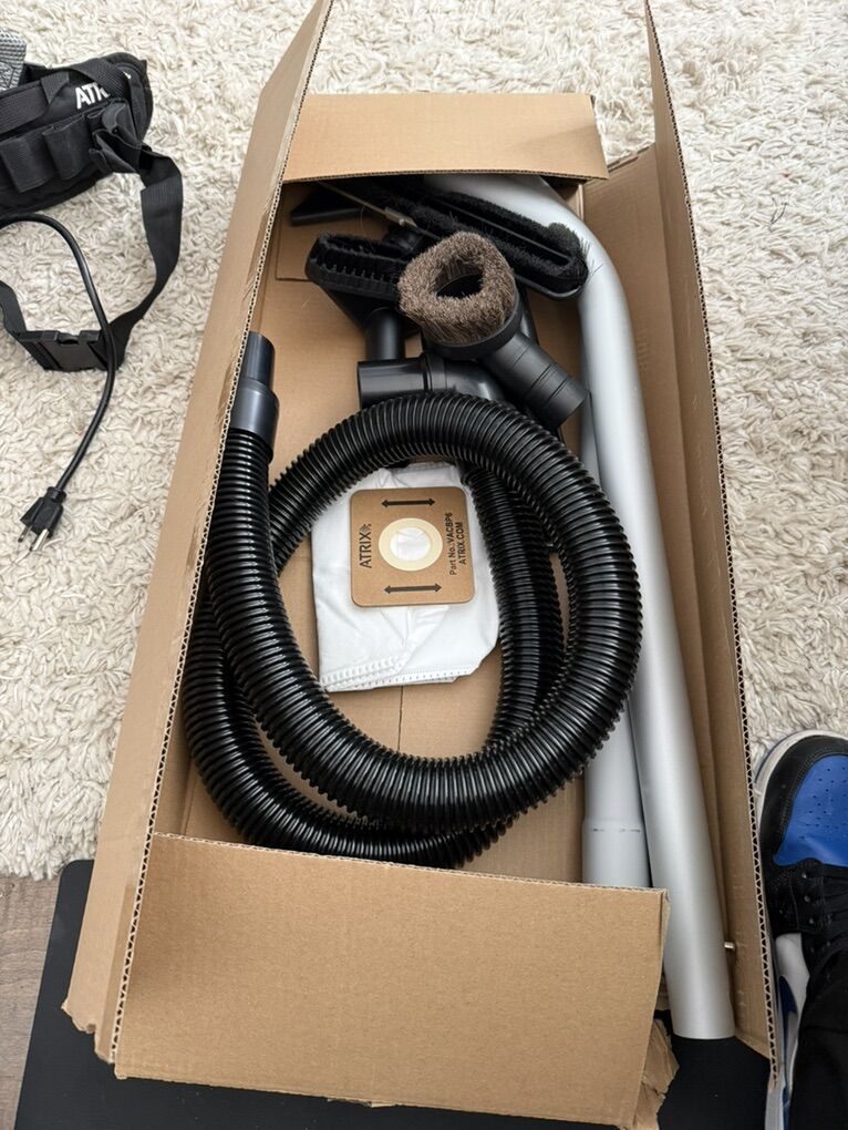 This is a powerful vacuum that was used once, and I no longer have a need for. It has a hepa filter, also all the attachments and comes with the box.