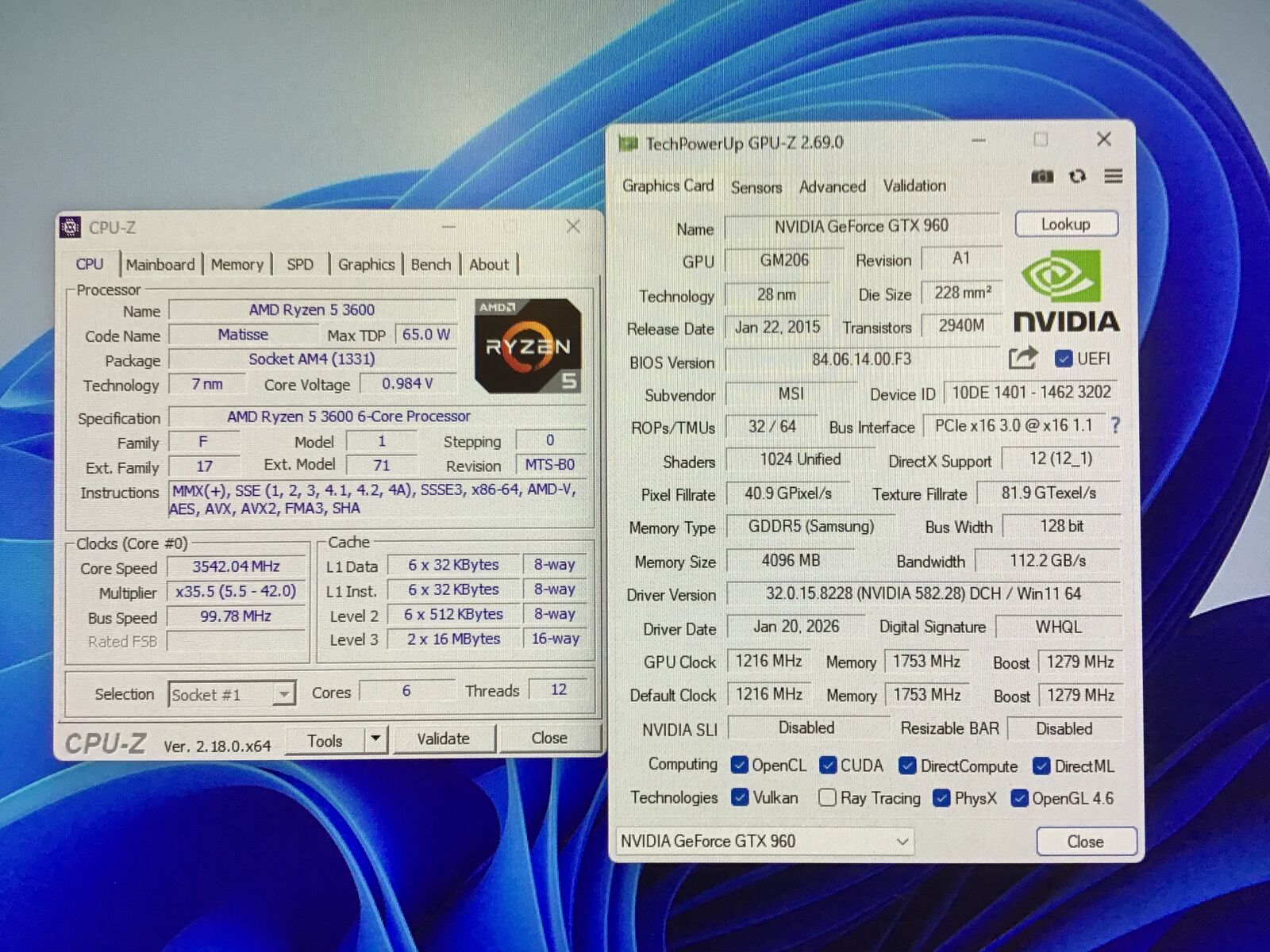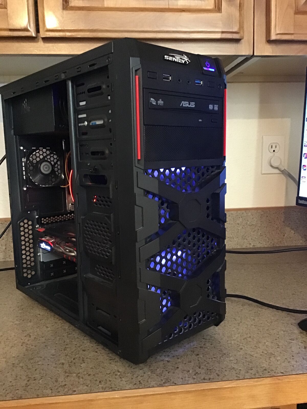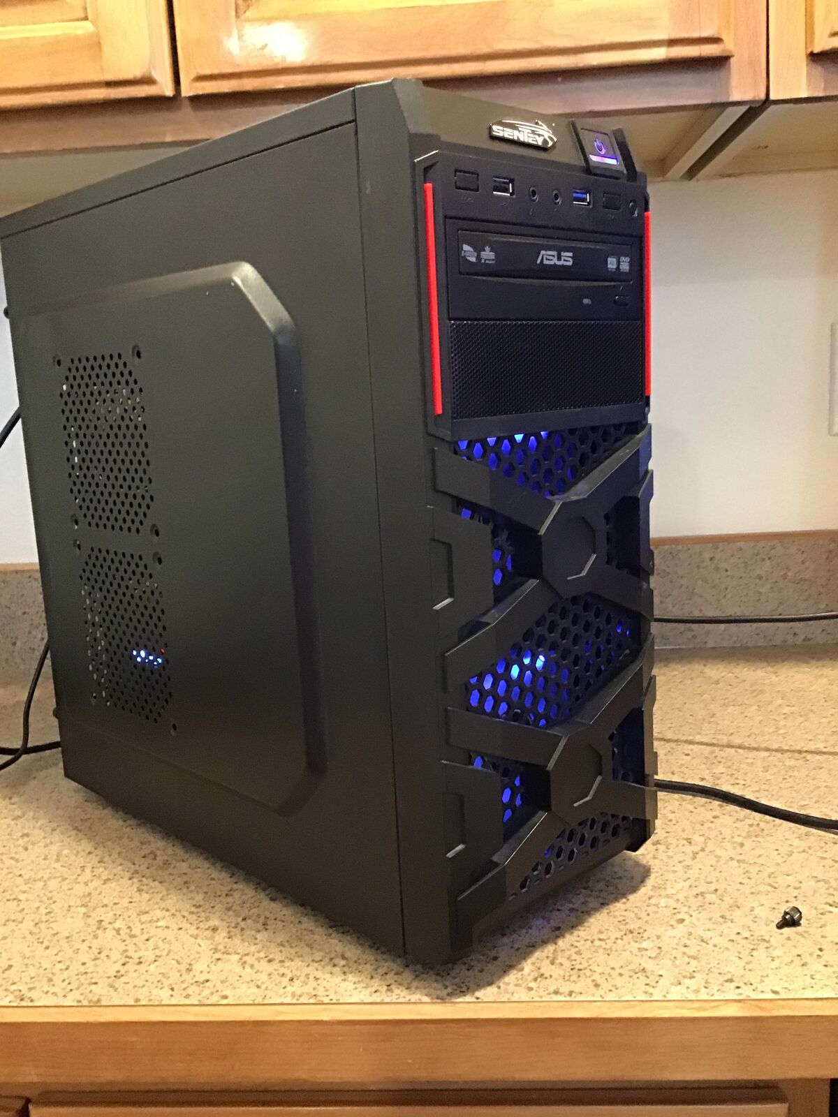 CPU: AMD Ryzen 5 3600 (6-core/12-thread, solid performance ~3.6GHz base, boosts higher) RAM: 16GB GPU: NVIDIA GeForce GTX 960 4GB (decent for 1080p tasks, older games, or extended desktop/multi-monitor use) Storage: 512GB NVMe SSD (fast boot and load times) OS: Windows 11 Home (activated and updated) Case: Seney mid-tower with RGB fans/lighting, mesh front for airflow, DVD drive, clean internals and cable management