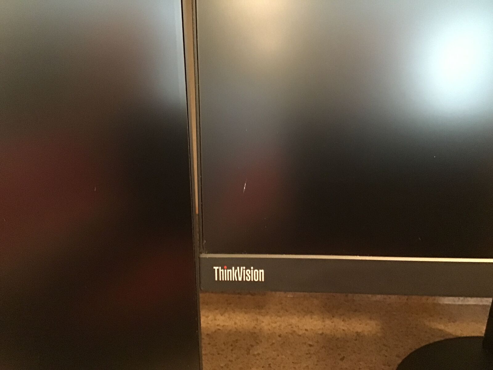 Monitors (x3): Lenovo ThinkVision T24i-10 – 23.8" IPS panels, 1920x1080 Full HD @60Hz, thin bezels for seamless triple setup, adjustable stands (height/tilt), multiple ports (HDMI/DP/VGA). Great for multitasking, spreadsheets, coding, or immersive viewing. All three included with their stands and cables. Note: One monitor has a small scratch on the bezel/frame (visible in the close-up photos when powered off), but it does not show at all when the monitor is on and has zero impact on the display, picture quality, or usability. Included Peripherals: