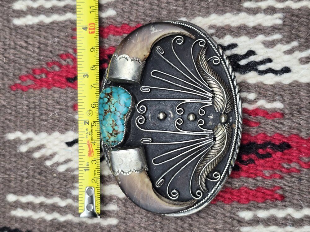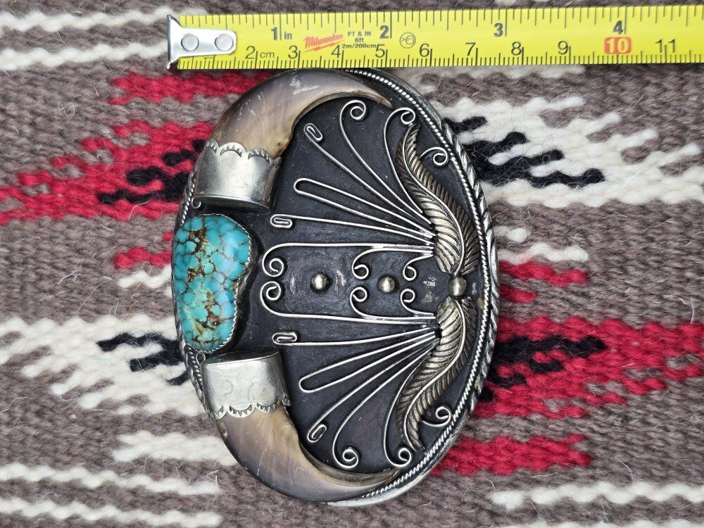 VenmoAlright we've got a special vintage buckle here! Made and signed by the Apache artist Richard L. Reeve, he made this one larger than most buckles you'll see on here. Measures 4 inches long, and 3 inches wide, this is a noticeable statement piece for sure. Richard decided to use Tibetan turquoise which is mined in the Himalayas!